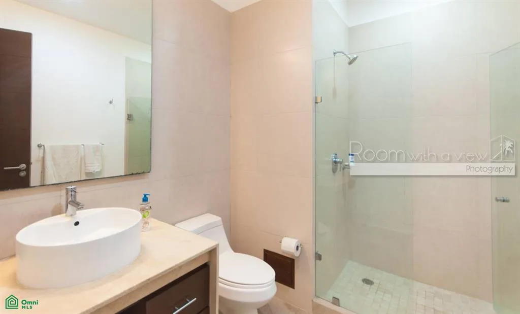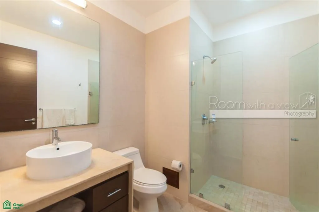 The residence features two bedrooms and two bathrooms. It offers an open floor plan that receives abundant natural light. The fully equipped kitchen includes premium appliances. Separate living and dining areas are provided, along with a laundry room containing a washer and dryer. Tile floors and high-quality finishes are found throughout. The condo is fully furnished and equipped with ceiling fans and air conditioning. Each bedroom includes built-in closets and an en suite bathroom.