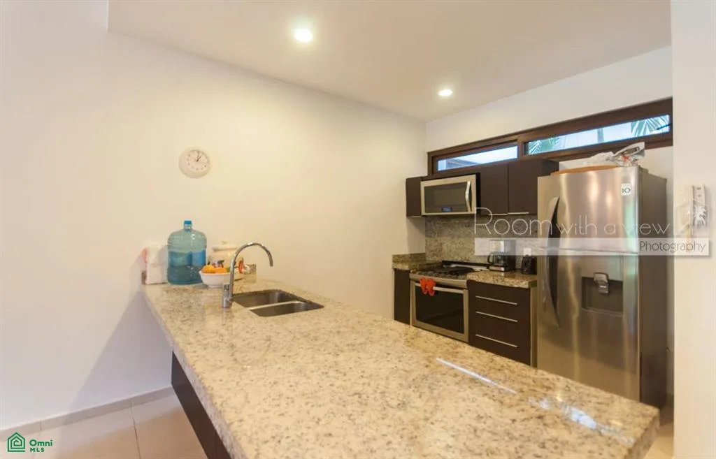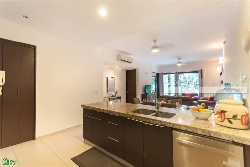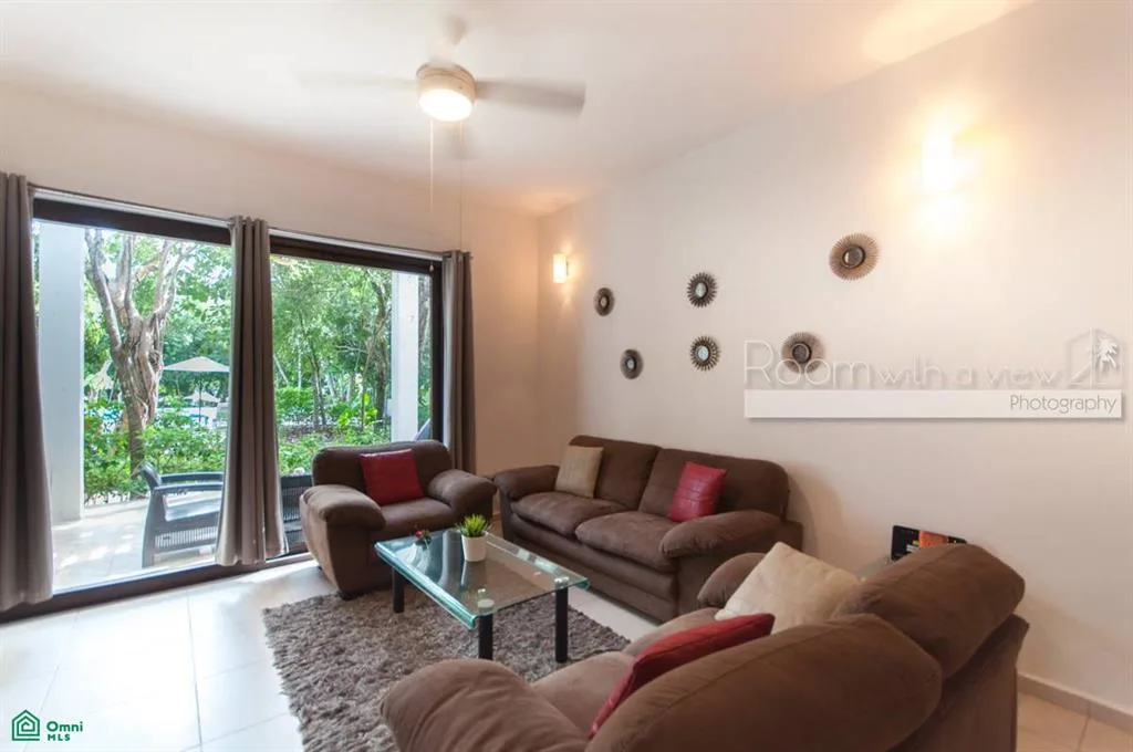 This garden-level condo is located in a residential community within a 717-acre golf resort in Akumal, situated in the Riviera Maya approximately halfway between Playa del Carmen and Tulum, and a short distance from the Caribbean coast.