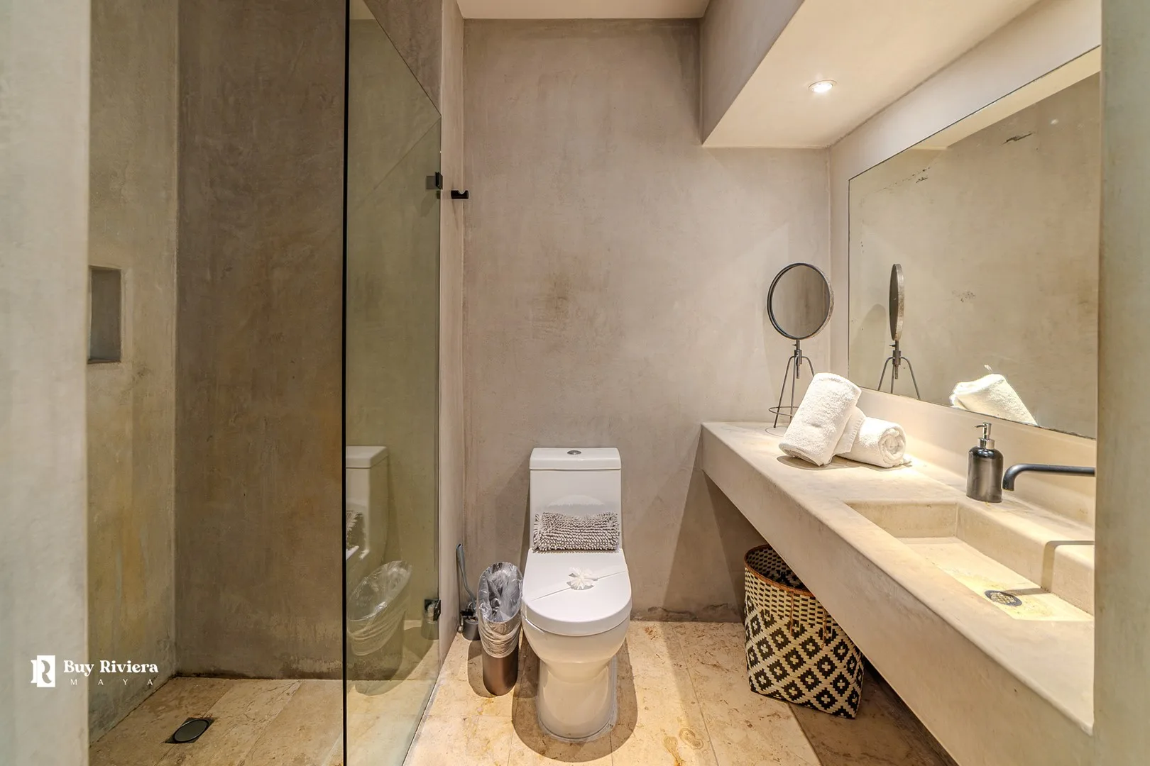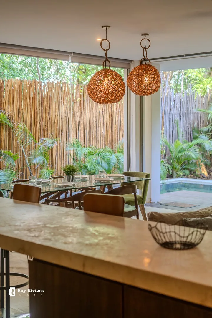 Welcome to Condo 104 at Sky Jungle, a ground-floor sanctuary where modern architecture meets the wild beauty of Tulum’s sacred jungle. This 2-bedroom residence is nestled within the eco-community of Luum Zama. Floor-to-ceiling glass frames the green surroundings, while natural materials like chukum, stone, and wood ground the space in warmth and authenticity.