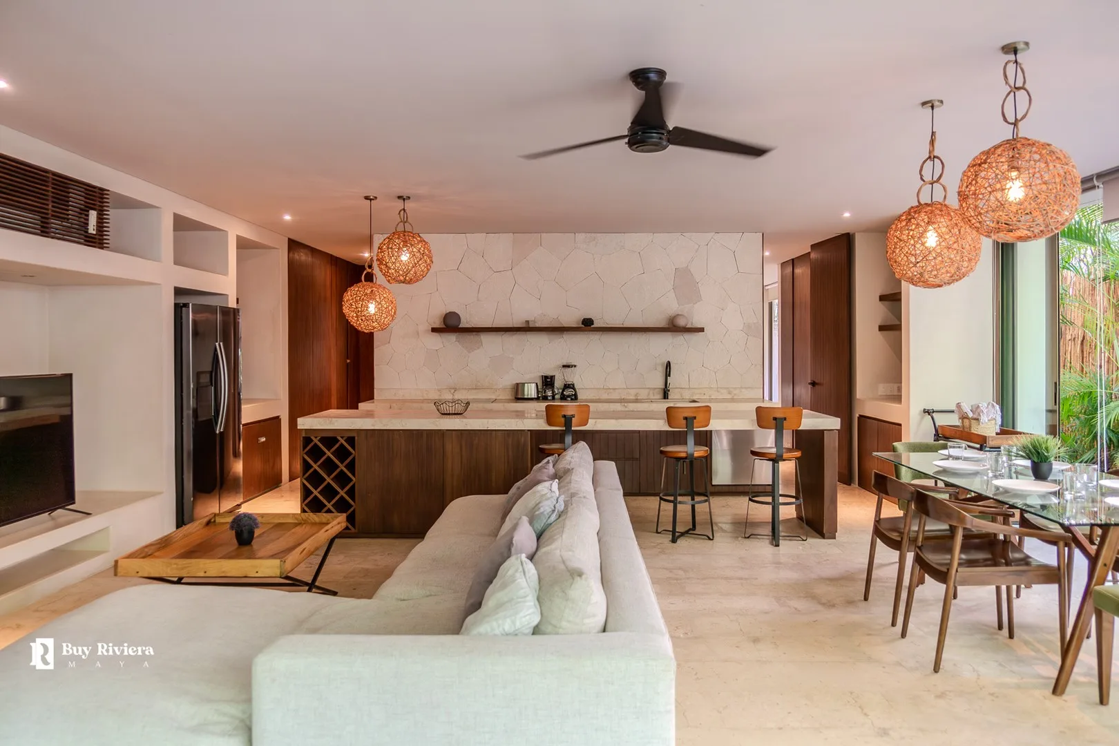 As part of Sky Jungle, you’ll enjoy access to Luum Zama’s holistic amenities, which include a yoga palapa, jungle trails, and wellness spaces. The condo includes assigned parking and comes furnished and decorated.