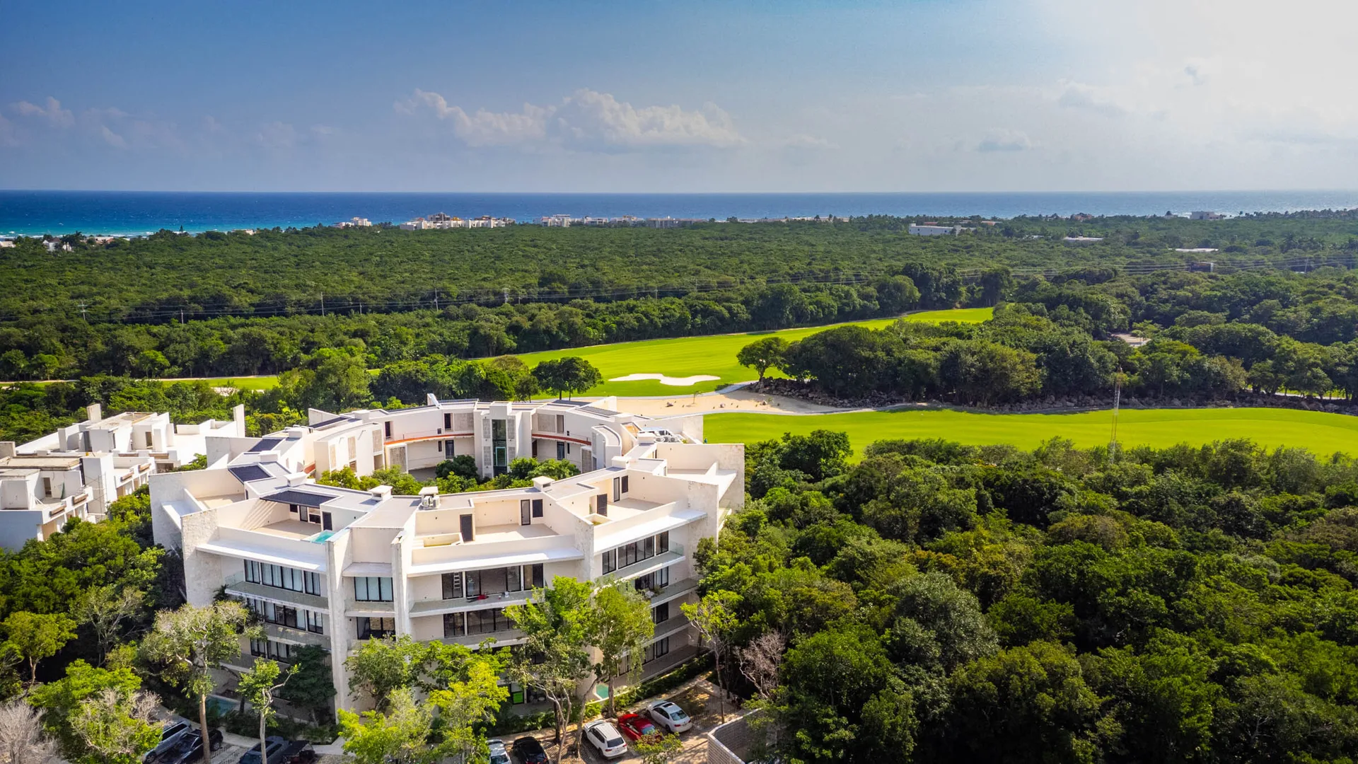 The building boasts three soaking pools, a lap pool, a running track, a gym, and a movie theatre. Tulum Country Club offers amenities including a PGA tournament golf course, several restaurants, a market, a spa, a gym, a pilates studio, a kid’s club, a teen club, co-working spaces, a juice bar, and a veterinarian.