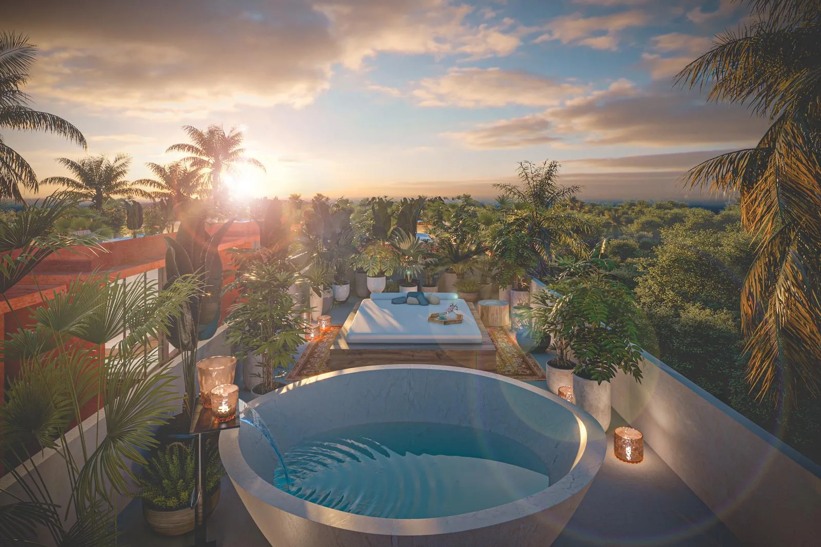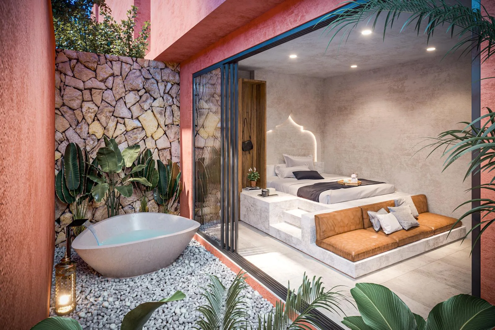 This unique concept in Tulum presents a loft-style apartment measuring 102. 6 square meters. It has been carefully designed for those seeking an authentic connection with nature without sacrificing luxury and comfort. Its style combines the elegance of Moroccan architecture with the relaxed spirit of Tulum, creating an ideal space for relaxation, living, or investment.