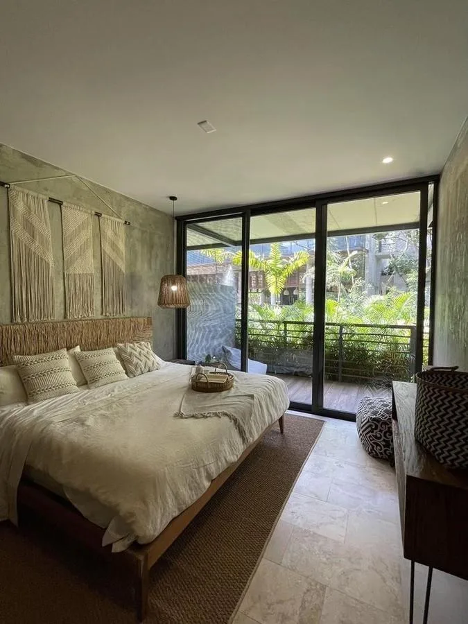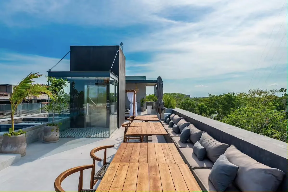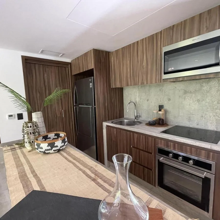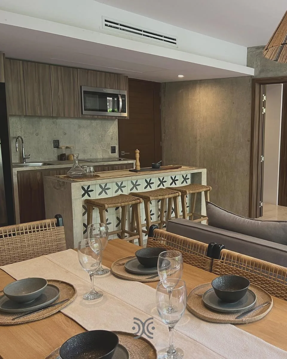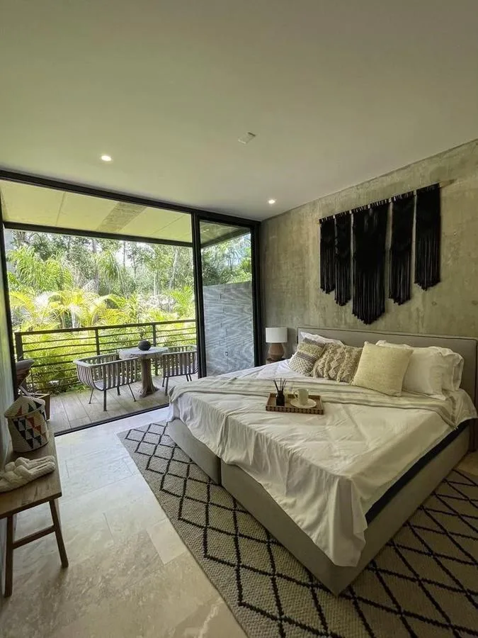 This luxury apartment is situated on Coba Avenue in Tulum, just five minutes from the beach and hotel zone. It is surrounded by nature and high-level services.