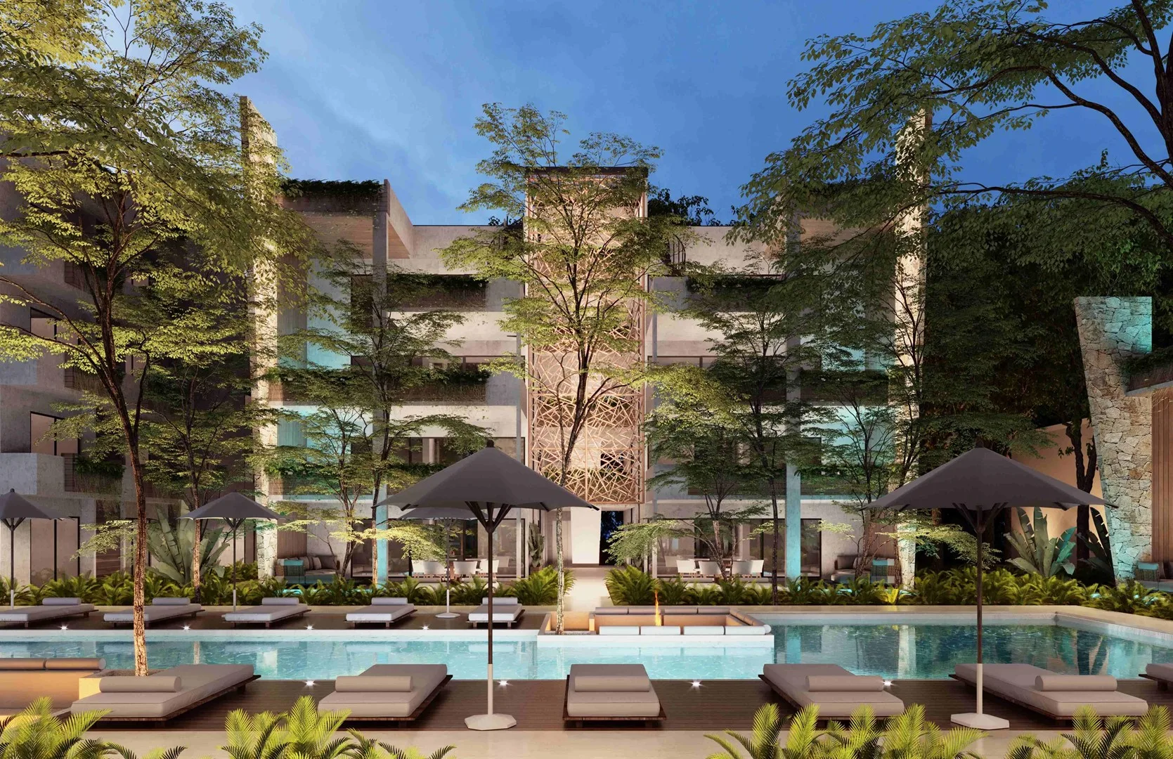 The development is located within Tulum Country Club, which encompasses over 100 hectares of green spaces. Residents have access to the club's extensive facilities, such as a PGA golf club, a private beach club, a clubhouse, 5-star hotel services, swimming pools, gyms, sports facilities, bars, a sport bar, a spa, and the PGA Academy market.