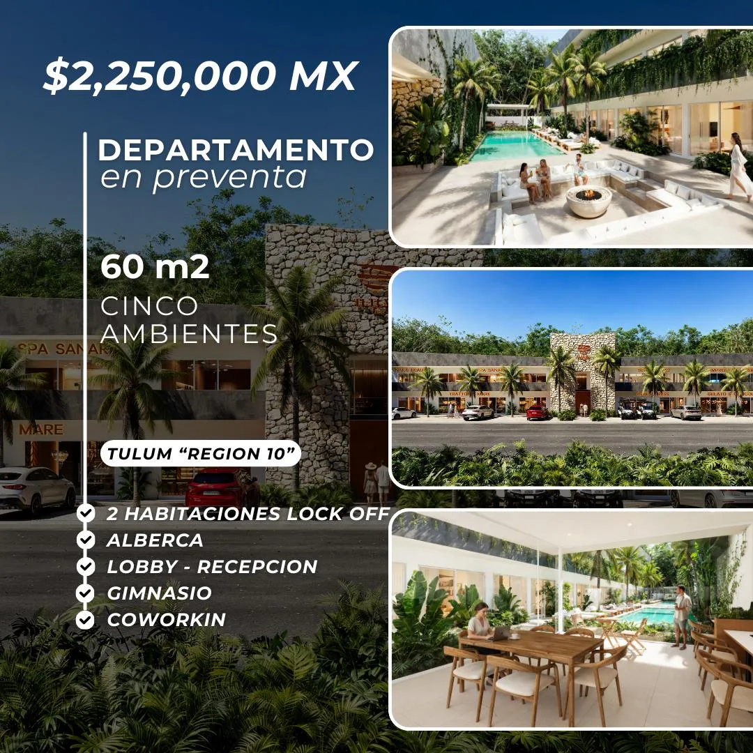 This modern apartment features a 2-bedroom lock-off design. It includes a private terrace and access to a swimming pool, reflecting a distinctive Tulum lifestyle.
