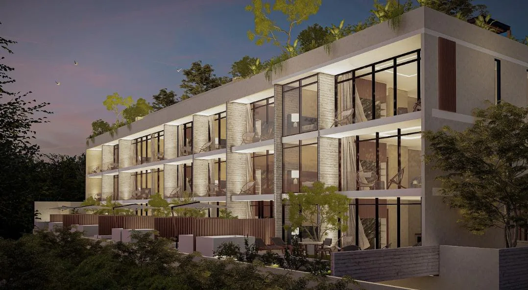 The project's design emphasizes wellness and community living. The development features a unique collection of amenities including a swimming pool, a jungle gym, hammocks, a dedicated yoga area, a solarium, a fire pit, and a combined grill and bar area. The property also includes underground parking.