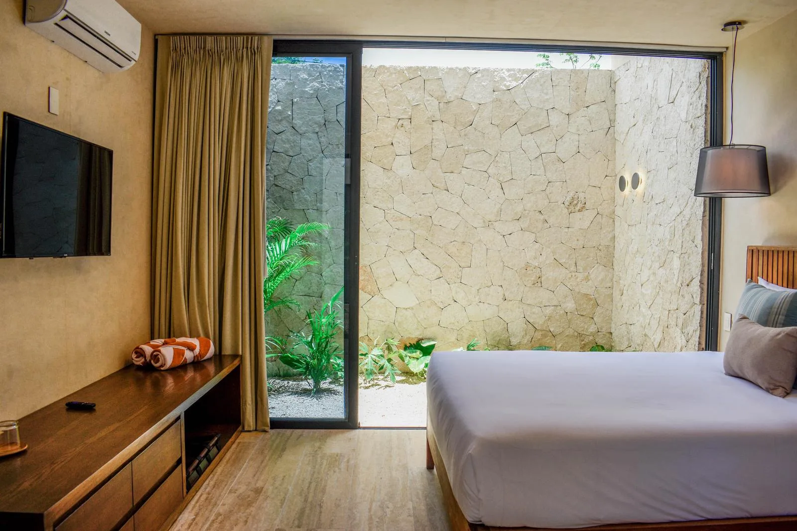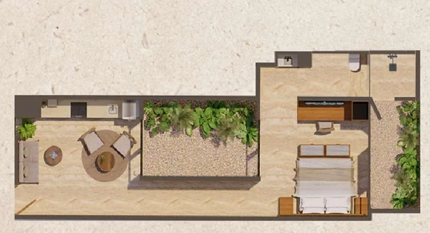 This modern, move-in ready, and fully furnished apartment features an intelligent layout with high-quality finishes. The unit includes one bedroom equipped with a queen-size bed, a living-dining area with a sofa bed, a fully equipped kitchen, one full bathroom, and two private terraces that allow for enjoyment of the natural surroundings.