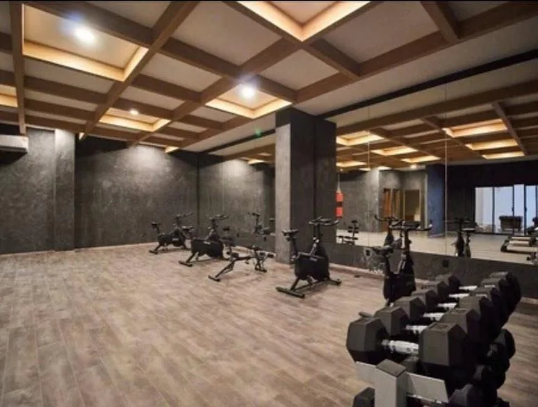 Building amenities include a gym, cinema, swimming pool, sauna, meeting room, and yoga room.