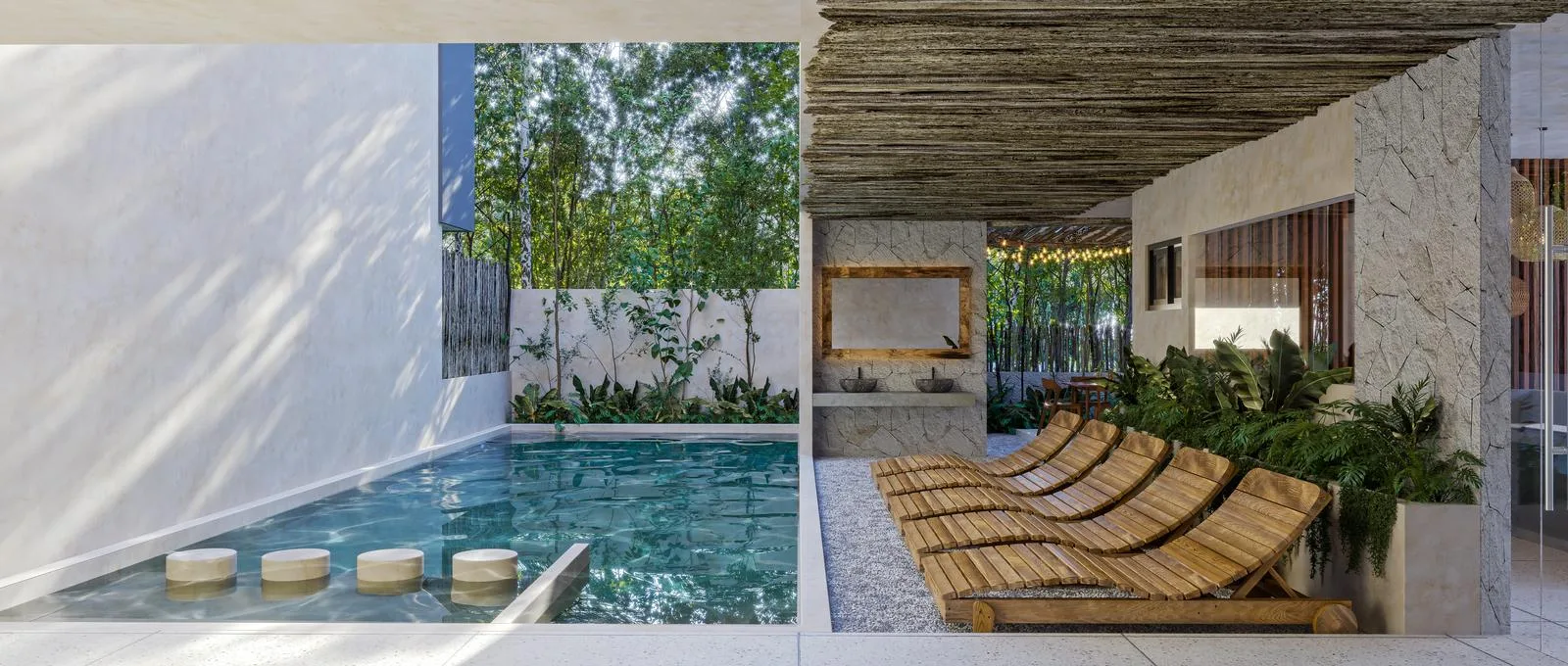 This apartment offers spacious and comfortable living in a design that blends modern functionality with tropical style, ideal for a shared lifestyle. It is located in Tulum, just minutes from the town center and close to the area's best restaurants and local shops. The residence features three bedrooms and thoughtfully designed living areas for socializing.