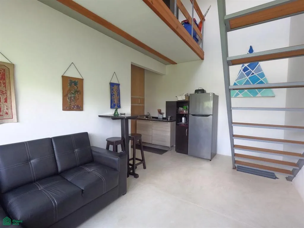 In the third tower, there are three apartments. Two are two-story units with one bedroom, a full bathroom, a kitchen, and a living room; one of these includes a terrace. The last apartment is a one-story unit with one bedroom, a kitchen, and a living room. It has covered parking for two cars.