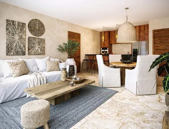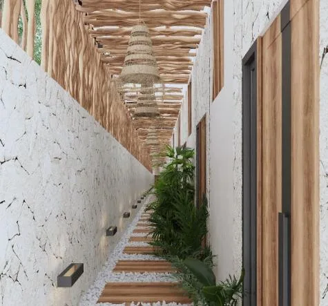 This apartment measures 32. 67 square meters and is located in an exclusive area of Tulum. It features one bedroom and one bathroom.