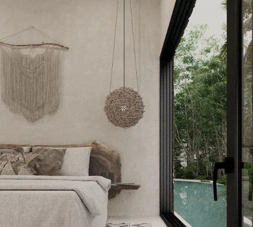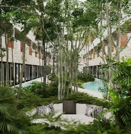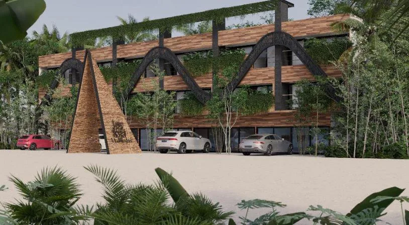 This apartment measures 32. 67 square meters and is located in an exclusive area of Tulum.