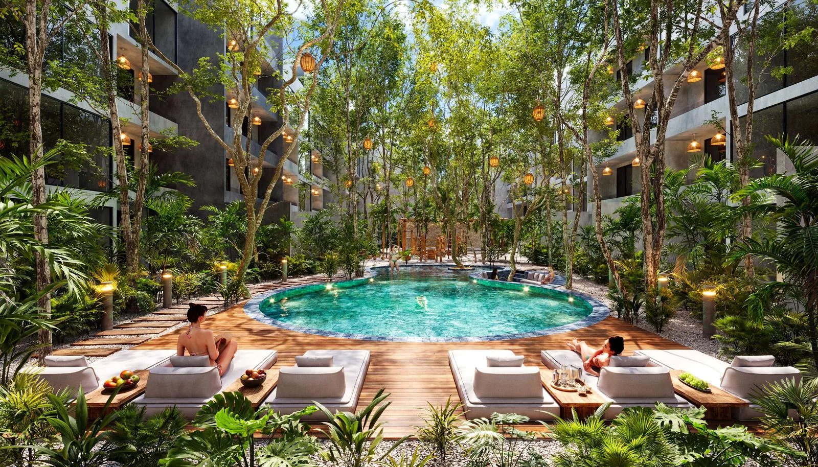 The property is situated in region 8 on Kukulcán Avenue, just minutes from the hotel zone of Tulum.