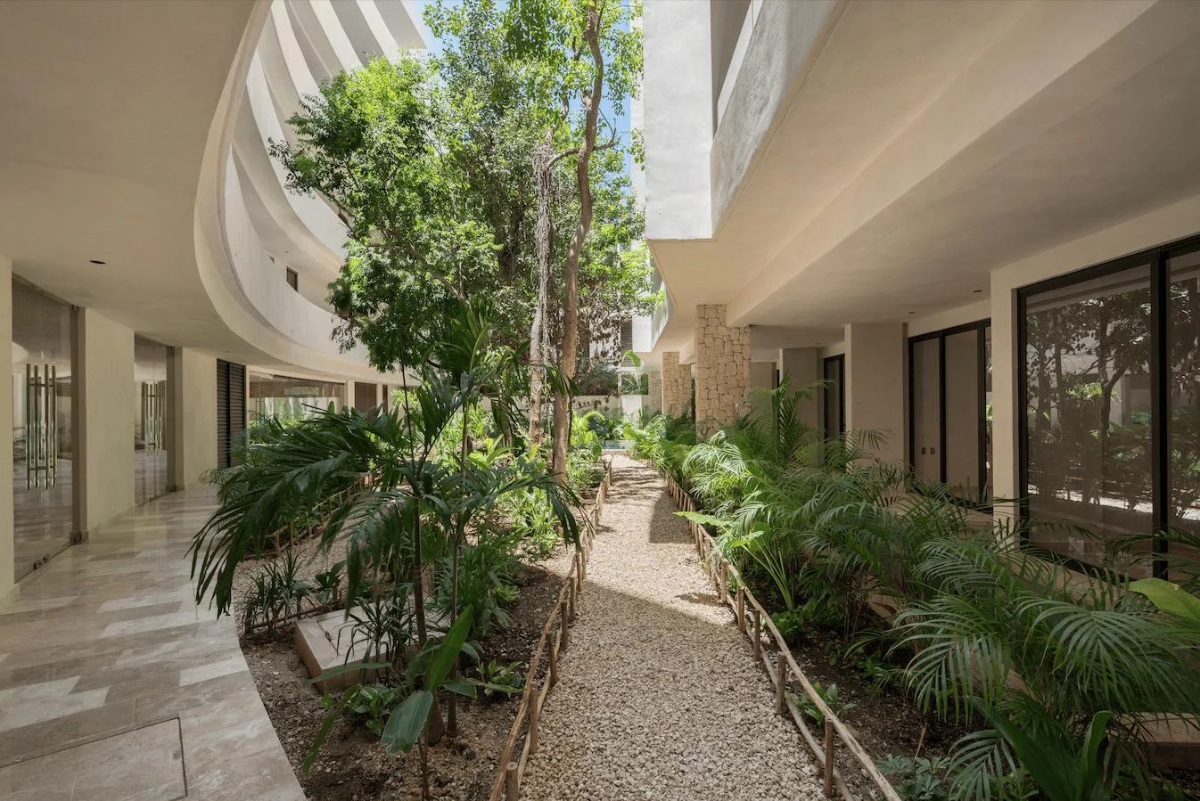This residential development is situated in the Aldea Zamá area of Tulum. It offers a retreat surrounded by nature and is a short distance from the beaches of the Mexican Caribbean.