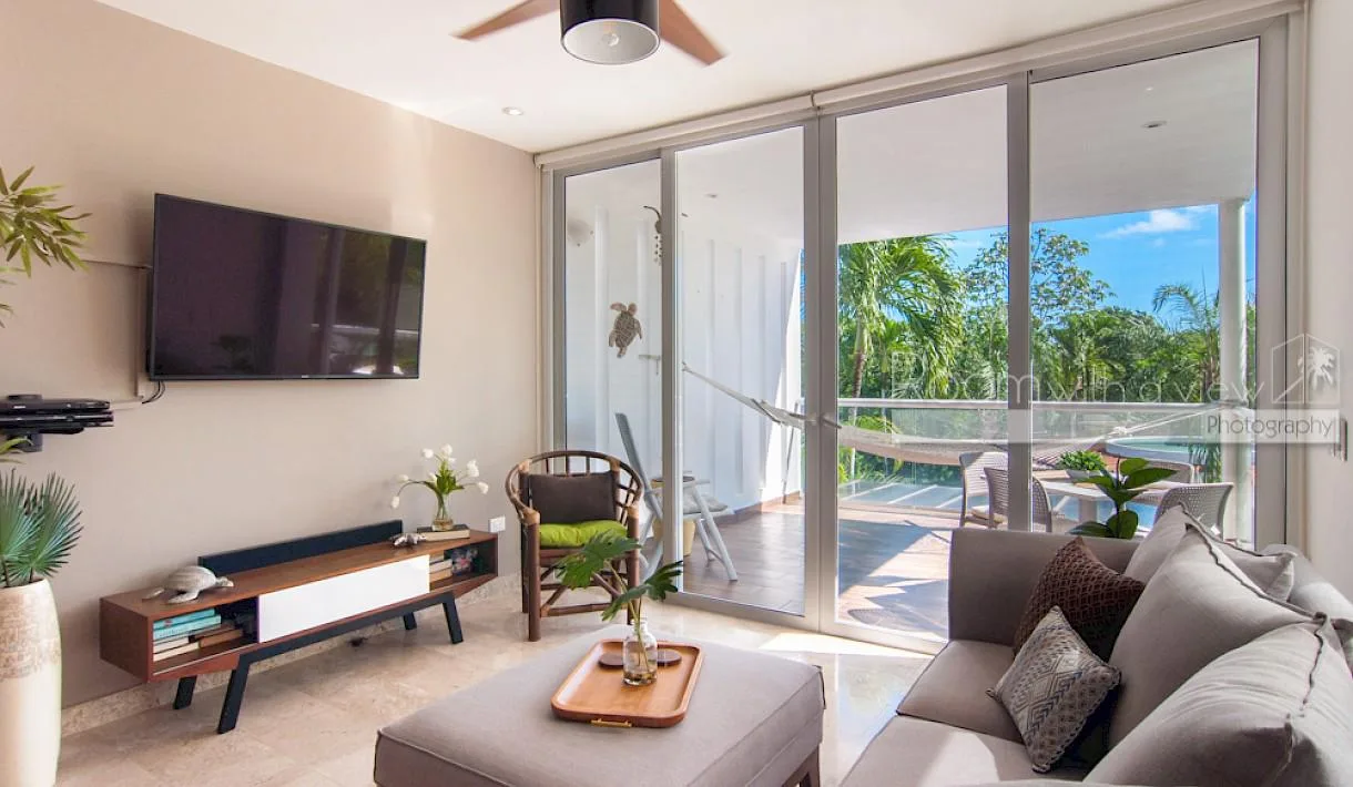 This luminous condo is located within the Tulum Country Club, a gated community offering resort-like amenities, privacy, and proximity to the Riviera Maya.