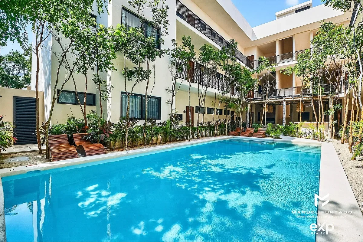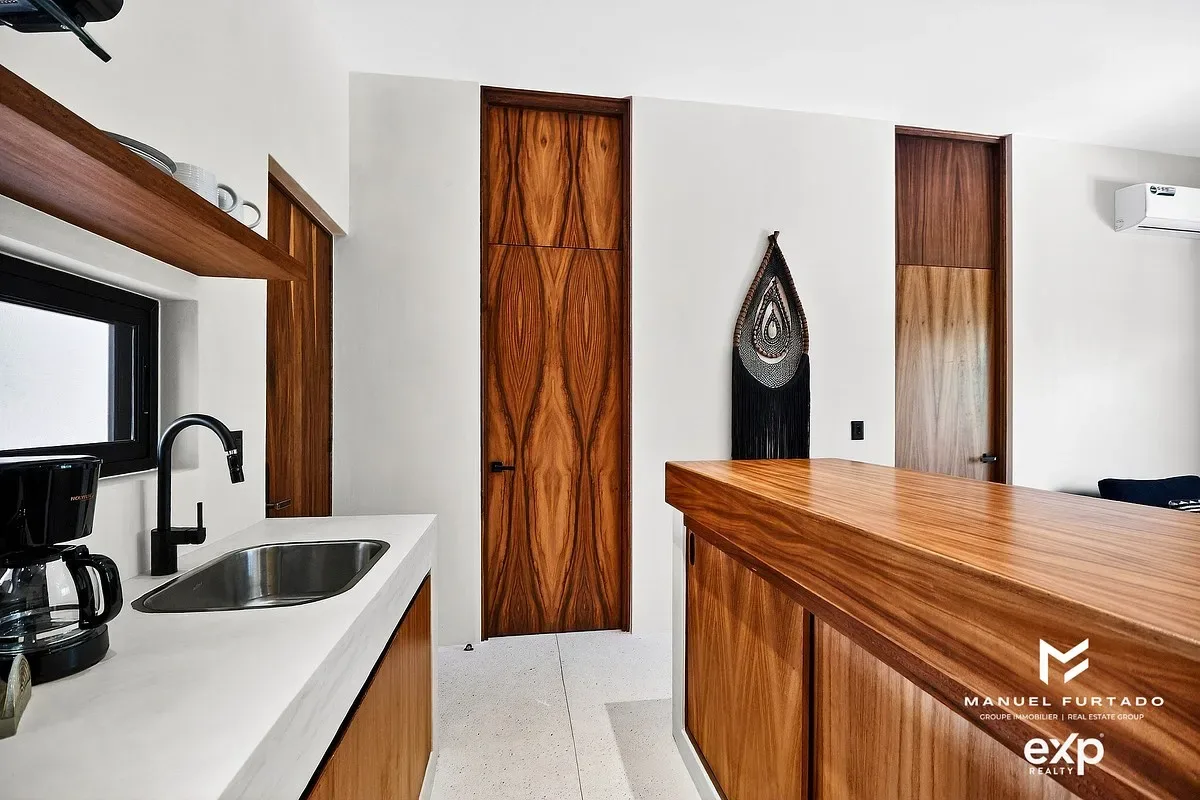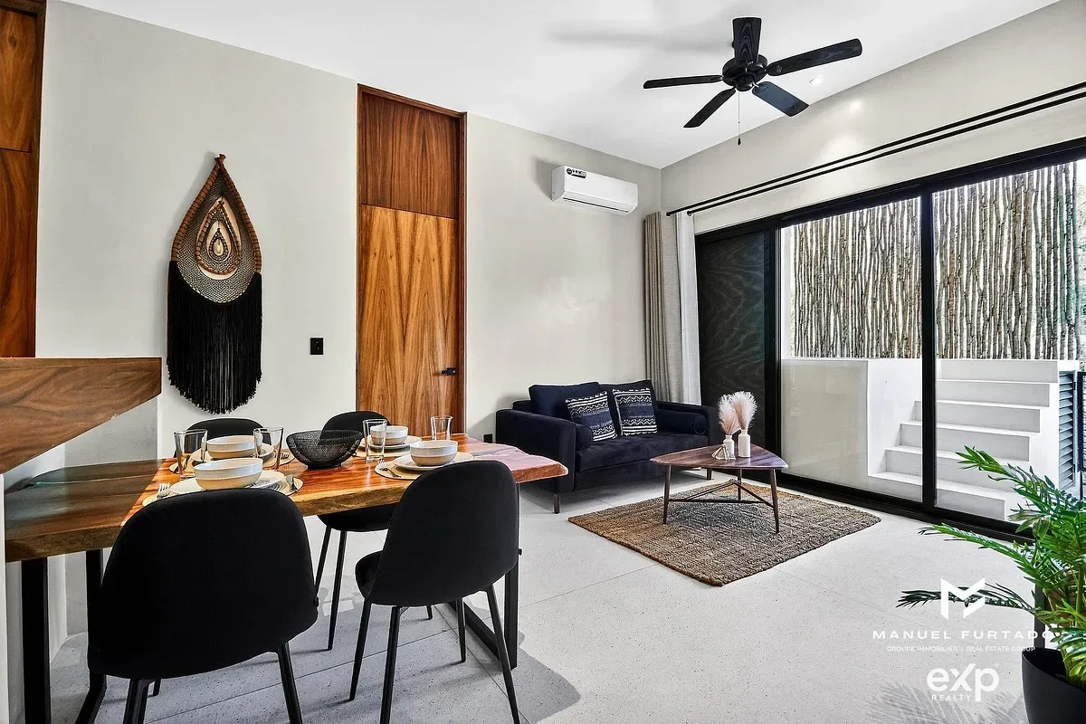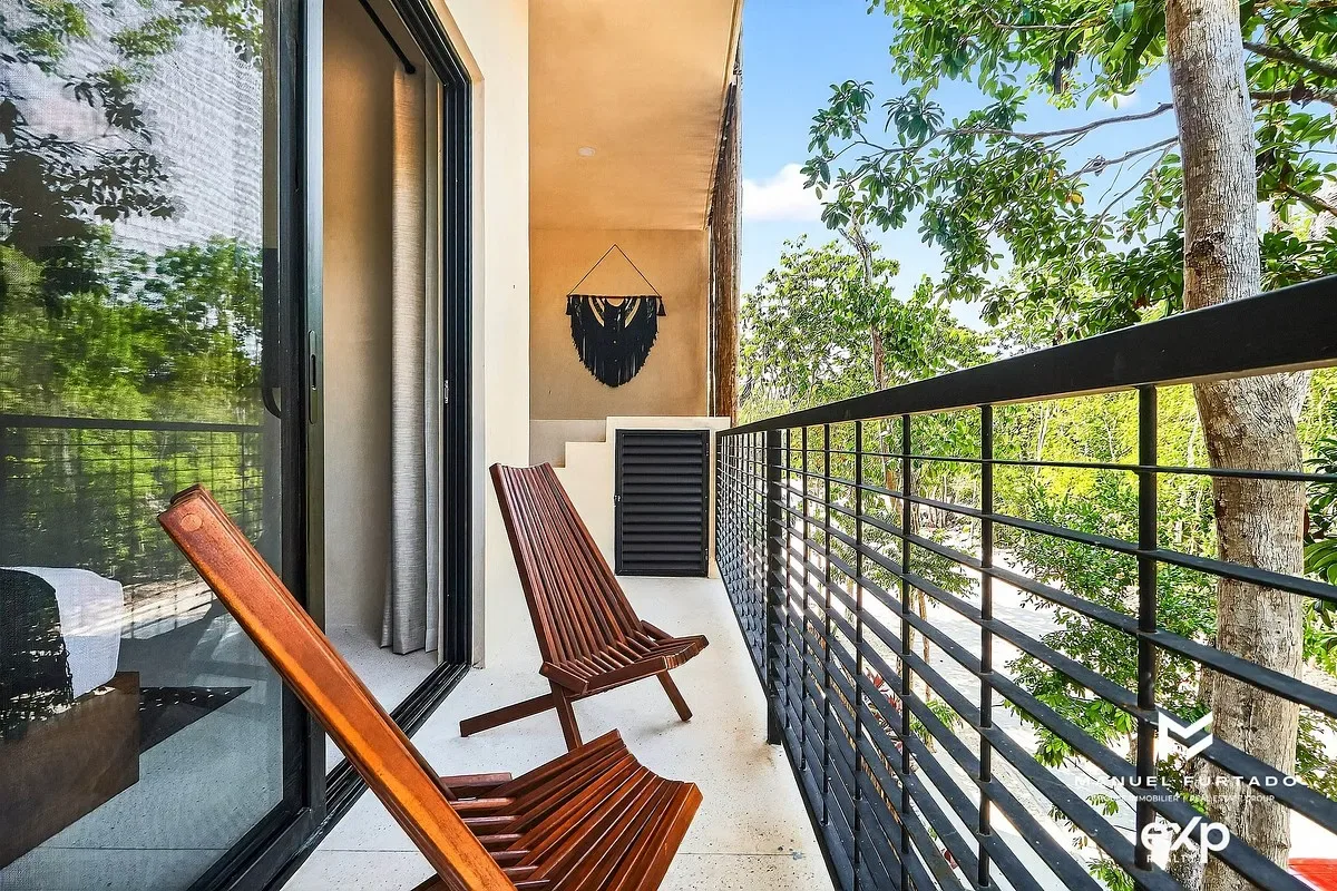 The condo is situated in the Aldea Zama community in Tulum. This area is located minutes from the beach and is surrounded by nature.