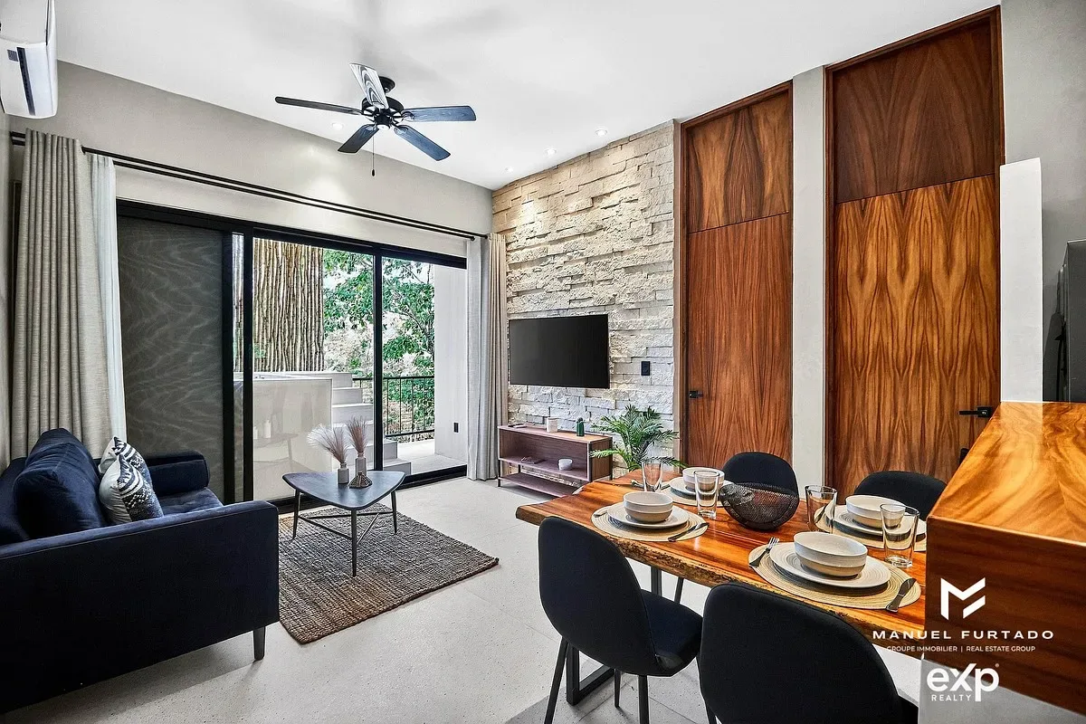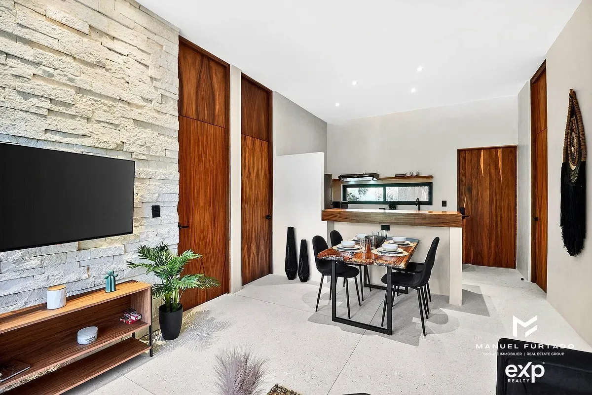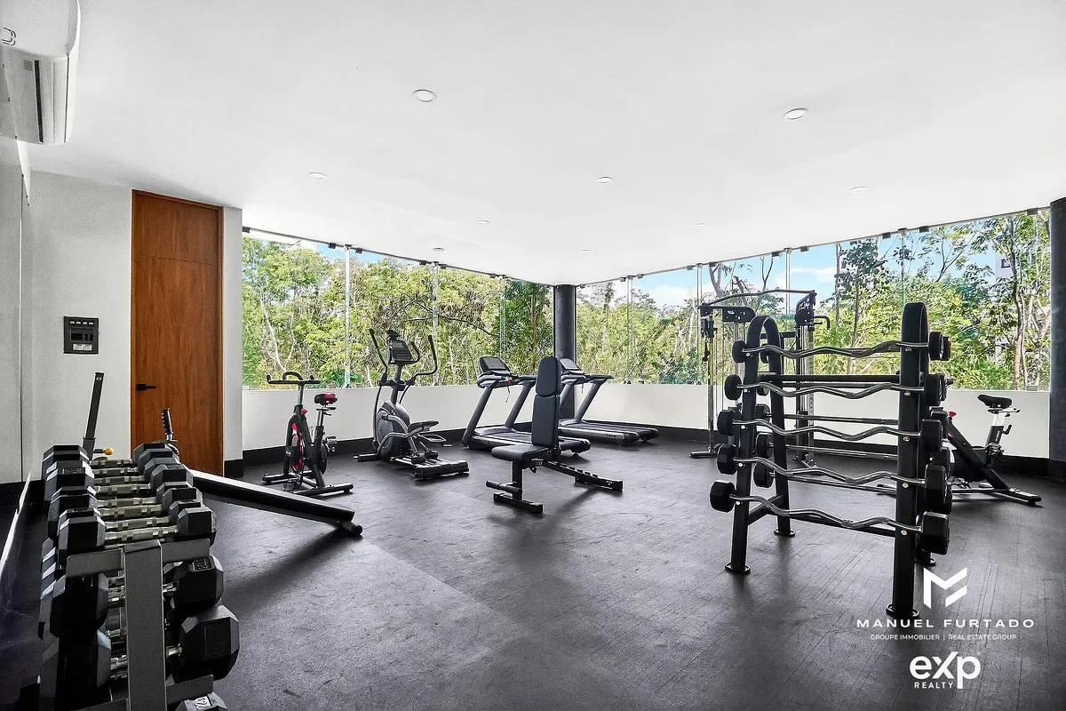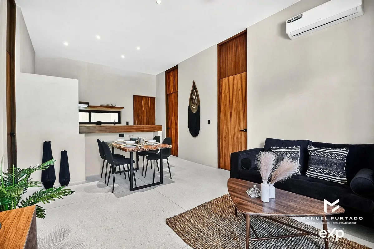 The condo is situated in the Aldea Zama community in Tulum. This area is located minutes from the beach and is surrounded by nature.