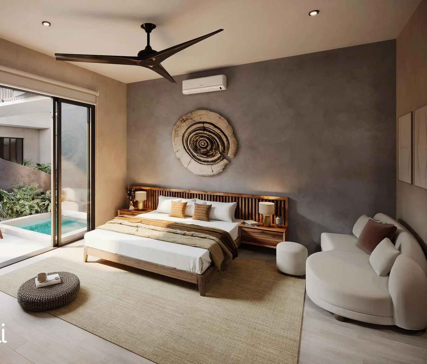 The equipped studio units are on the ground floor and feature a private swimming pool.