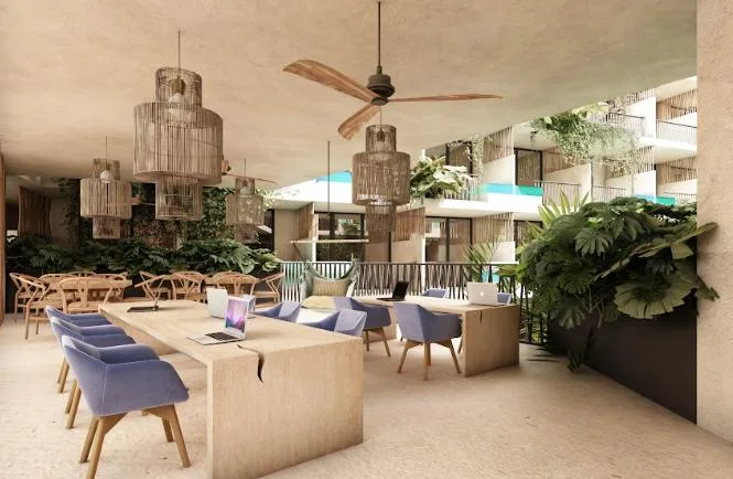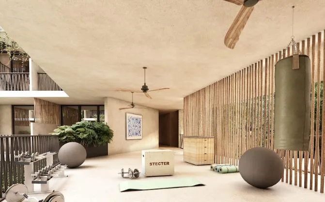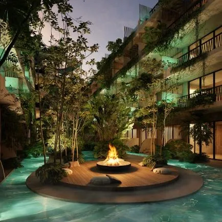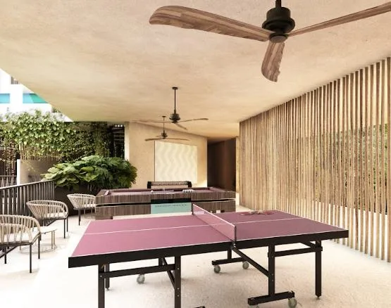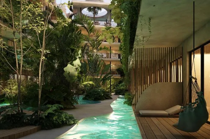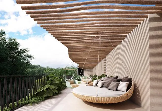 Additional building amenities include a play area and a bar for entertainment, Bali beds for rest, a bicycle zone and parking for mobility, and security for peace of mind.