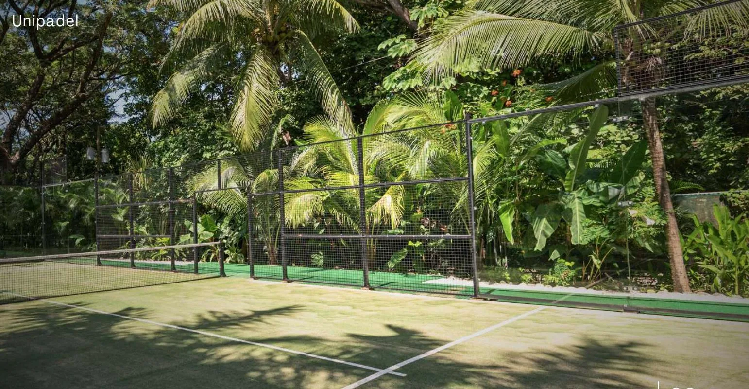 The residential complex features a swimming pool, a fitness gym, and a co-working space. Additional amenities include a padel court, a designated pet park, and controlled access entry. Private parking is provided.