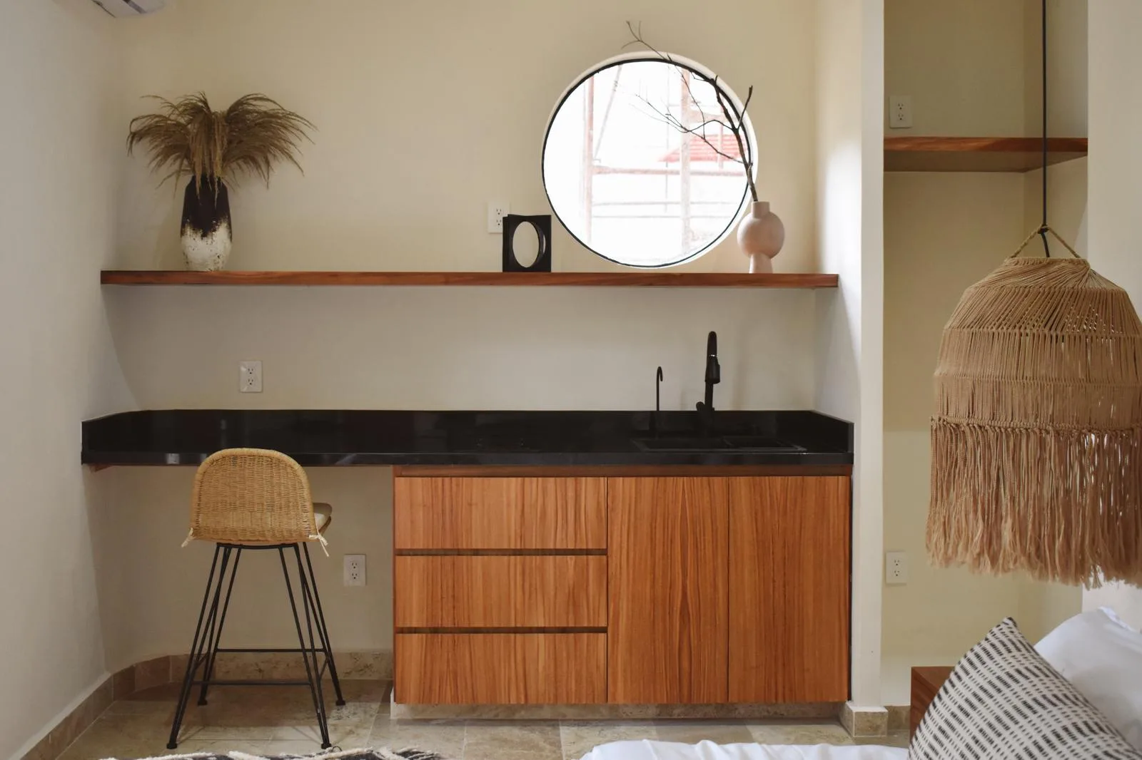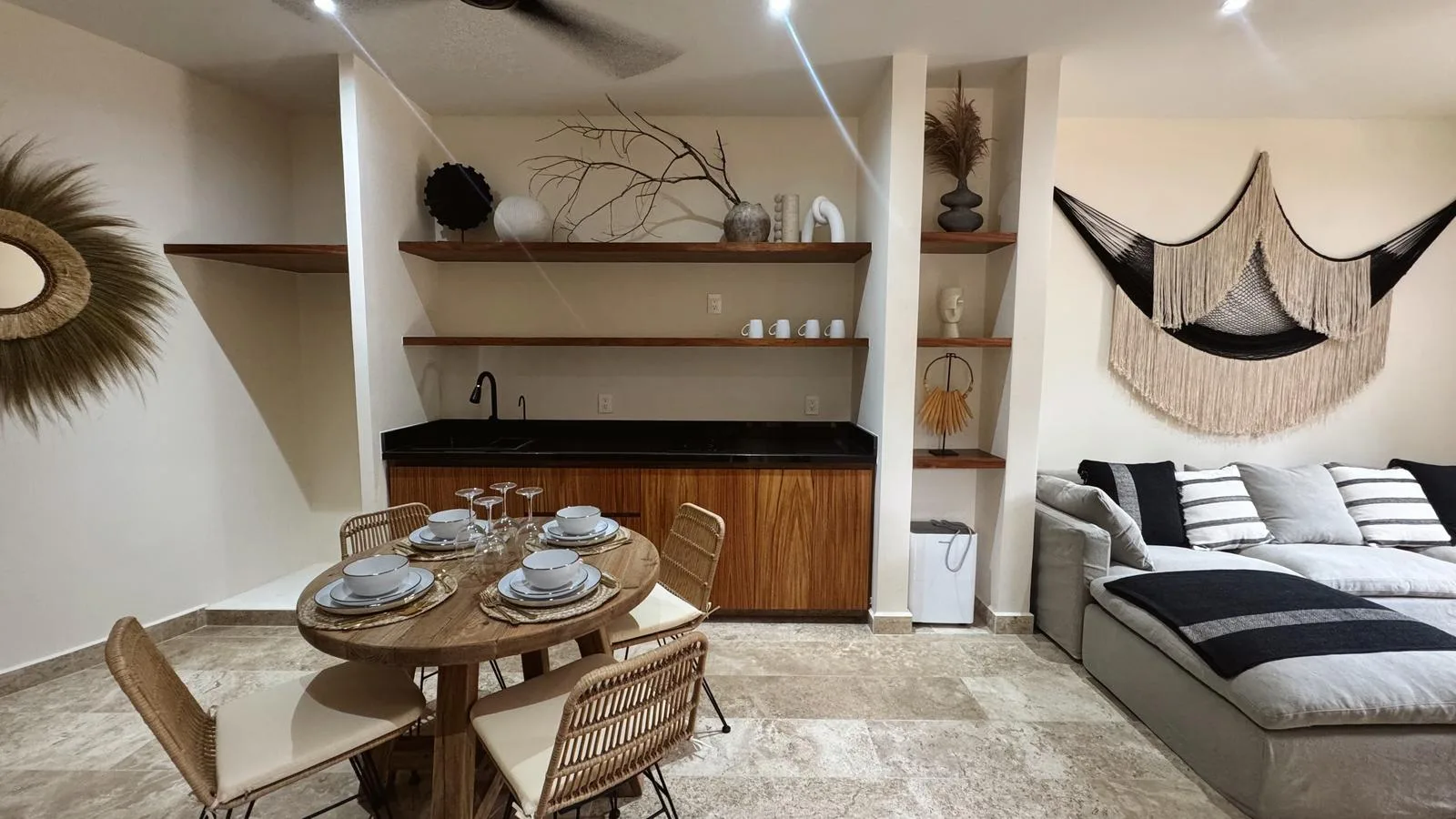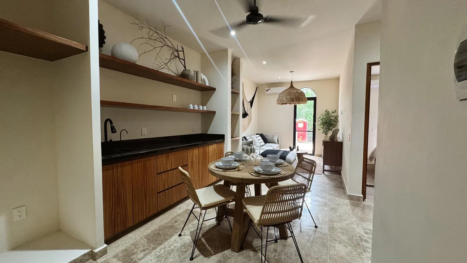 This studio for sale is located in Tulum's Region 10 and includes a private balcony. The unit has a total area of 42. 9 square meters.