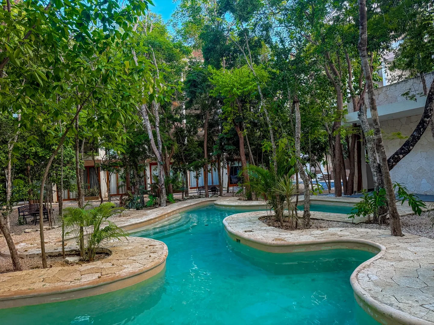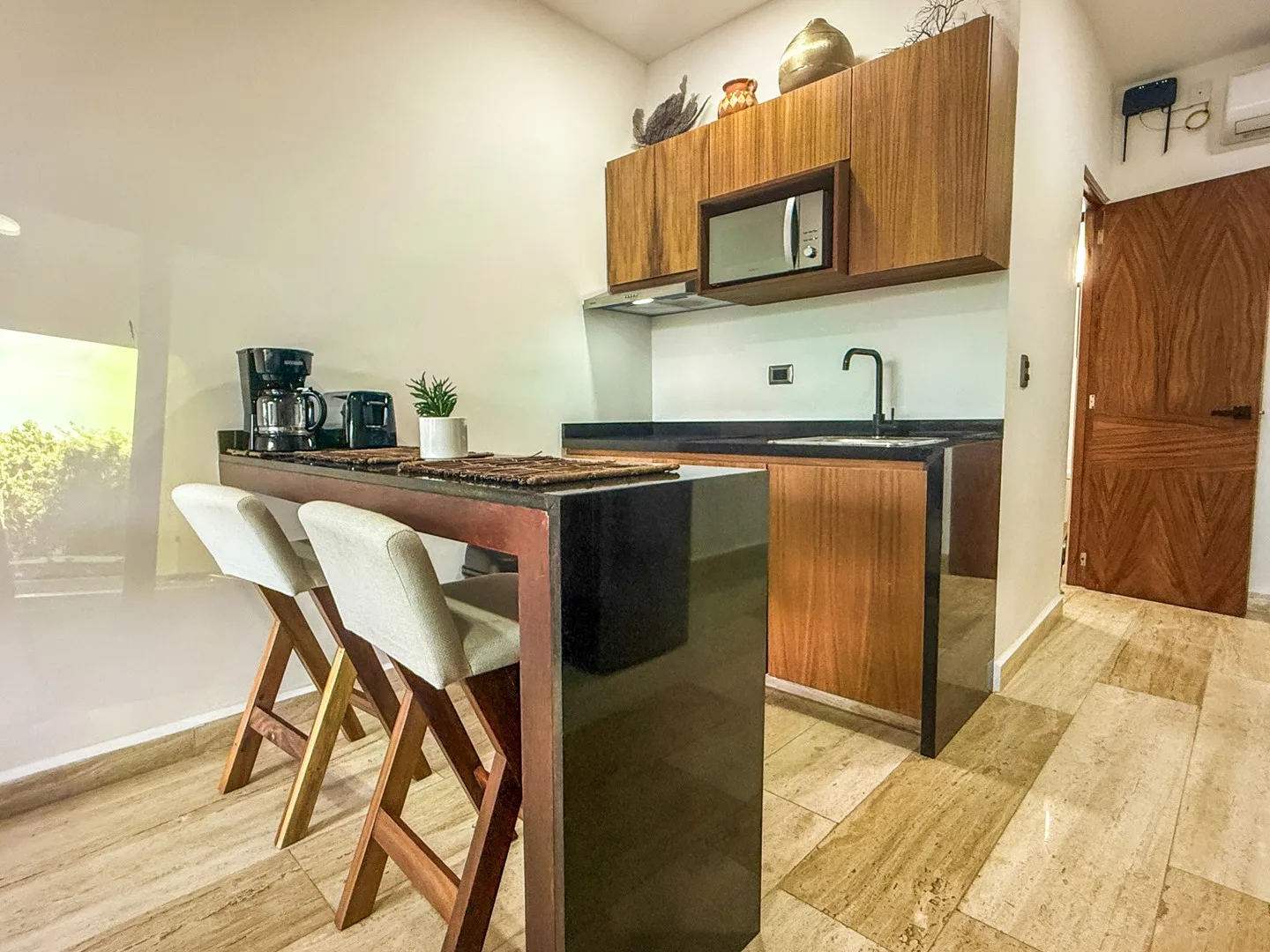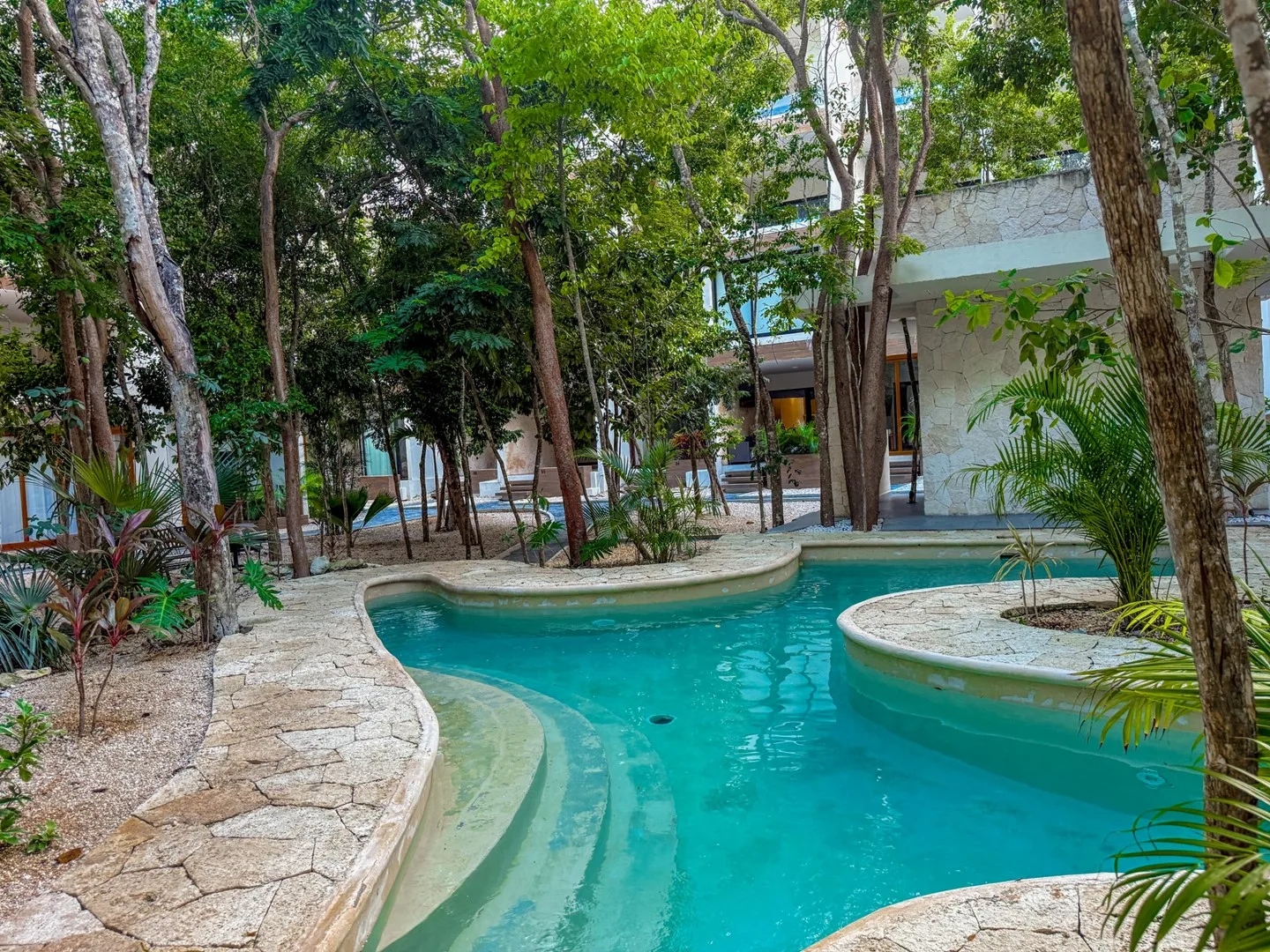 Discover simple luxury and smart design in this beautifully furnished studio within NAIA Tulum, a modern residential community surrounded by lush jungle in Region 15.
