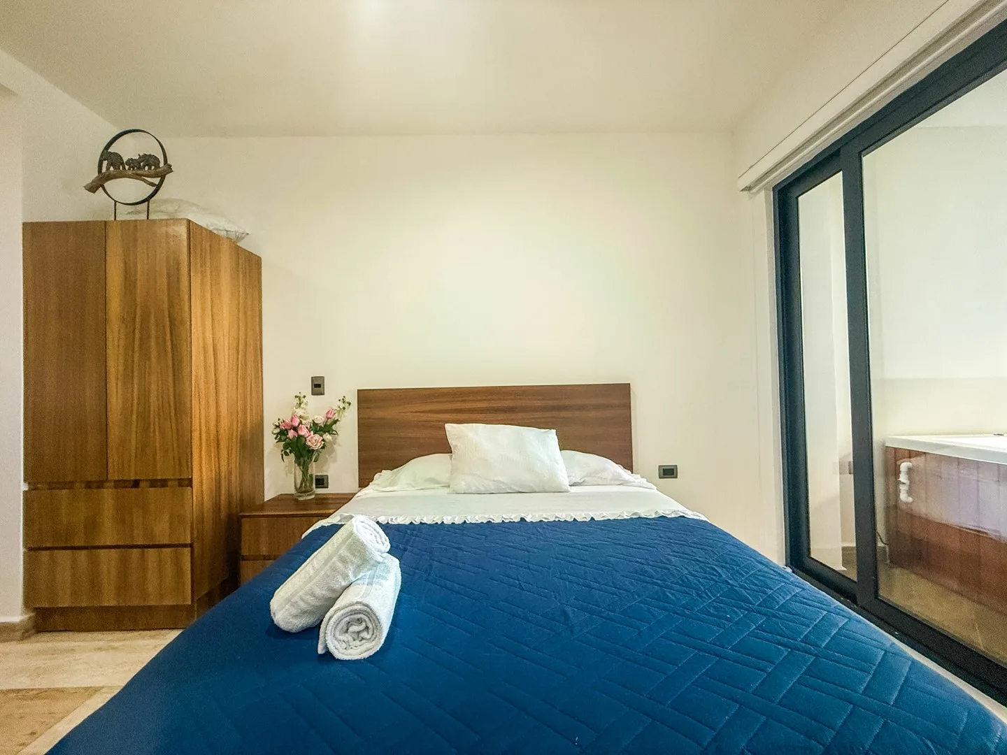 This 65 m² (700 sqft) residence blends style and comfort with an open-concept layout. It features a complete bathroom, kitchen, and a bedroom that seamlessly flows into a private terrace with a plunge pool.