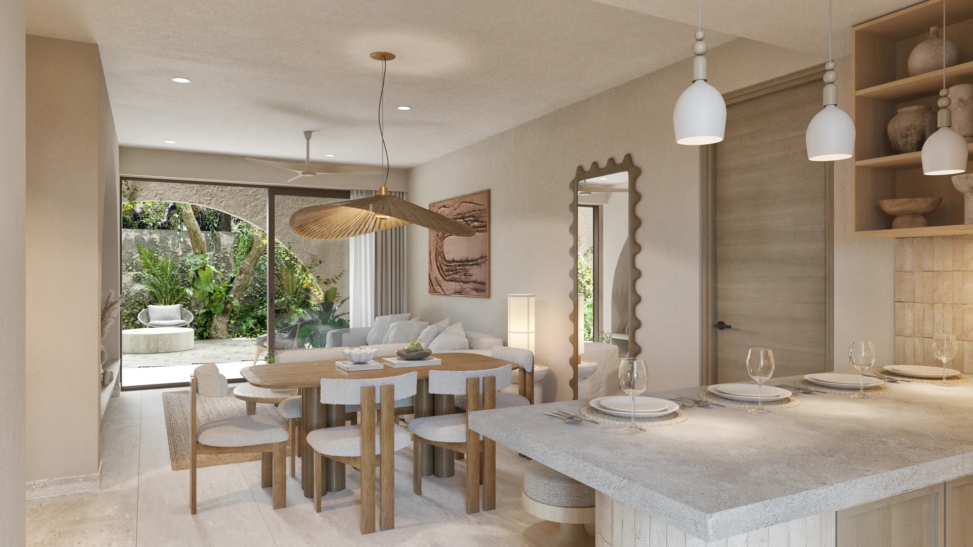 Located just 800 meters from the Tulum Archaeological Zone and the Jaguar National Park, this development emerges as a sanctuary where nature, architecture, and ancestral energy merge. Inspired by the vernal point, a symbol of the spring equinox, its design embodies harmony and is integrated with the essence of the Mayan jungle.