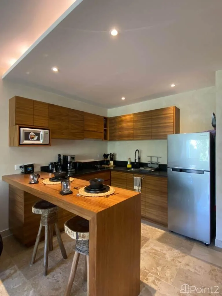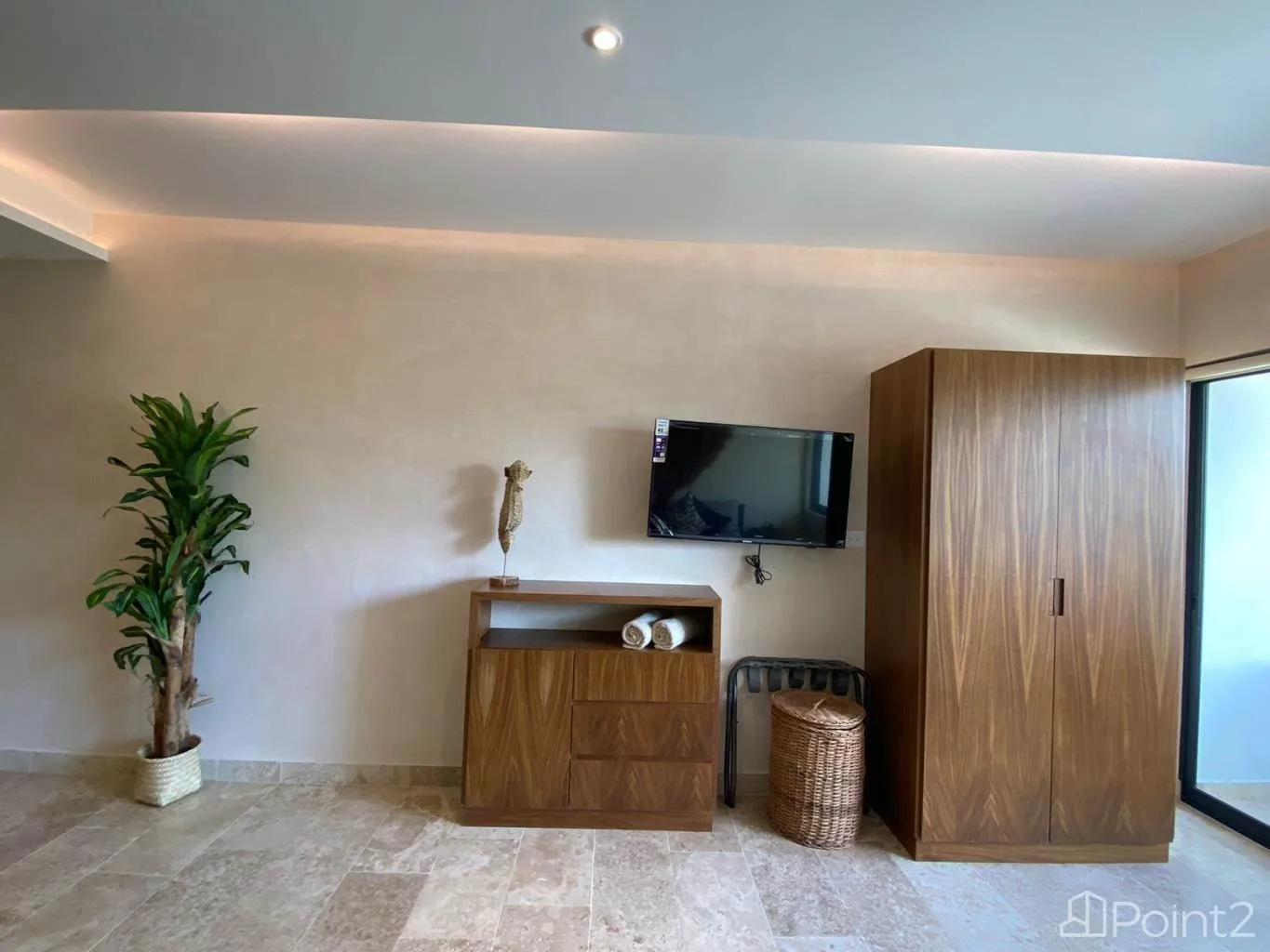 This is a fully furnished and equipped studio for sale in Aldea Zama, Tulum, within the Riviera Maya, Mexico. The unit has a total constructed area of 48 square meters. It is configured as a studio layout with one full bathroom. The property is one year old and in excellent condition.