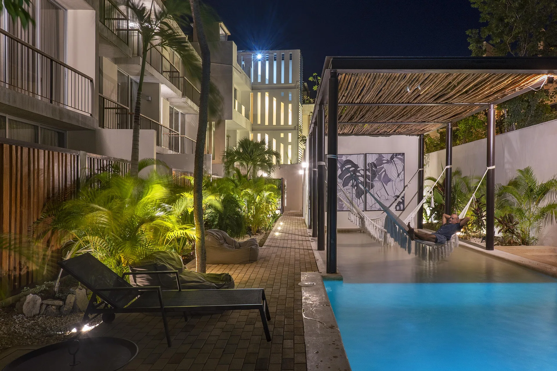 The apartment is strategically located in the heart of Tulum. It is situated near restaurants, boutiques, yoga studios, and supermarkets, and is just a few minutes from the Caribbean beaches, offering a tranquil yet connected environment.