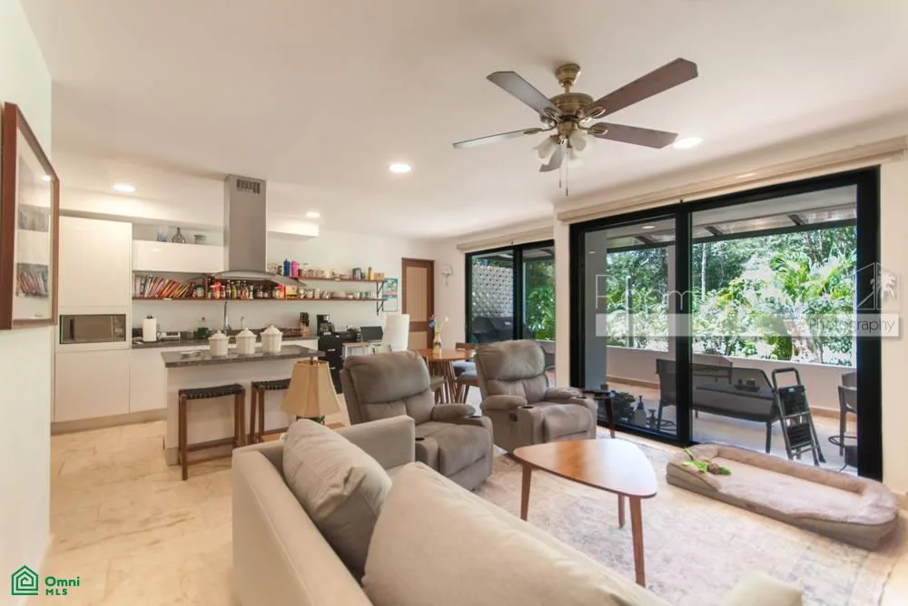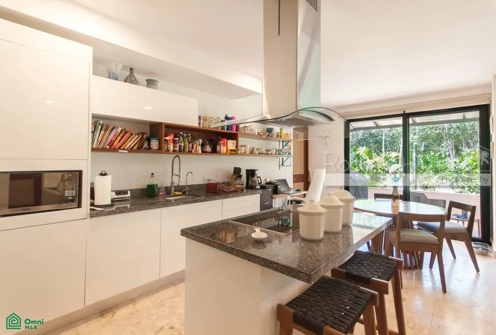 This garden level condo is located in Anah Village within the Akumal area. It features indoor-outdoor living spaces and is part of a 717-acre residential resort community. The complex is situated near a golf course and the Caribbean coast. Tulum Country Club, formerly known as Bahia Principe, lies in the Riviera Maya, approximately halfway between Playa del Carmen and Tulum, and about 50 miles south of the airport.