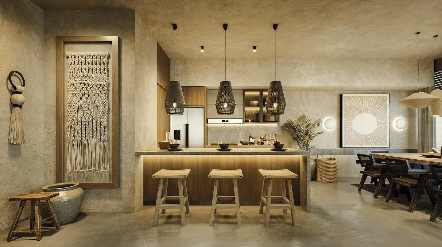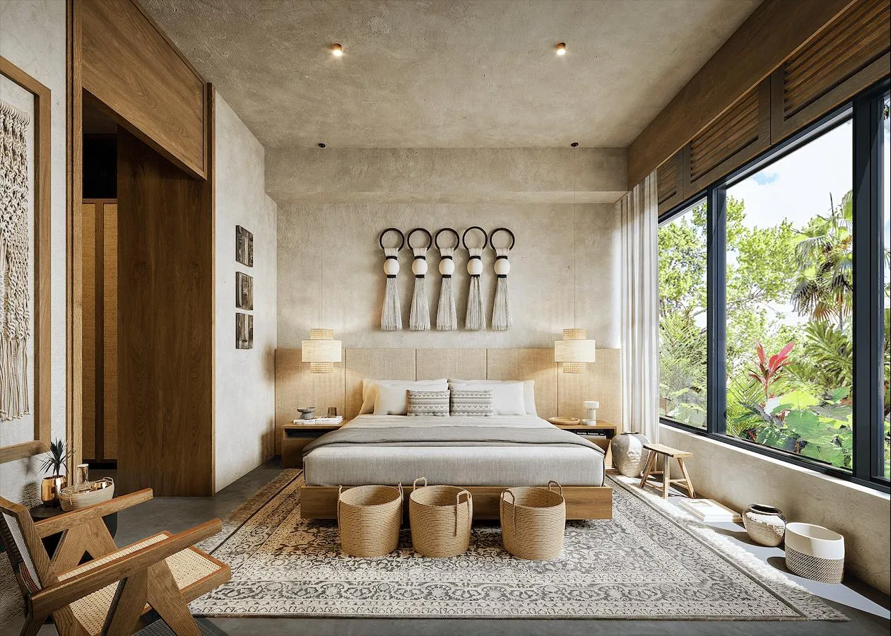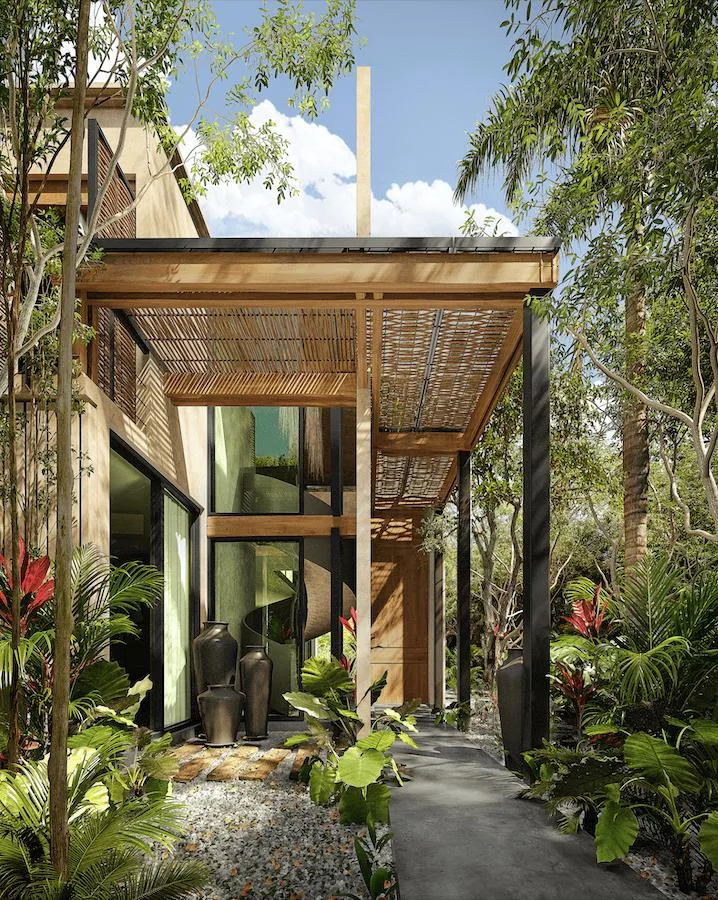 A detached house located just 10 minutes from the center of Tulum and the beaches. It features a contemporary design with natural materials and large windows that provide ample natural light and ventilation.