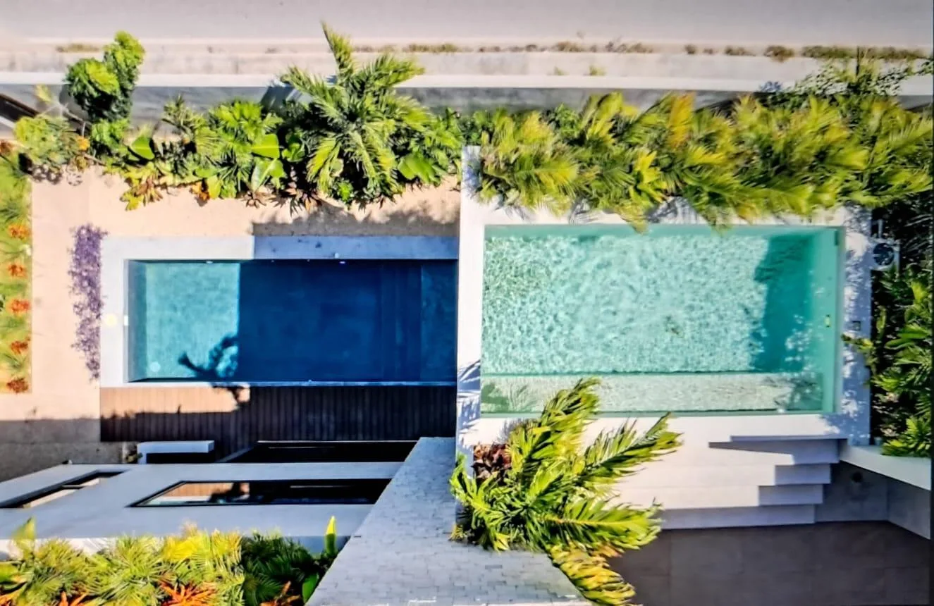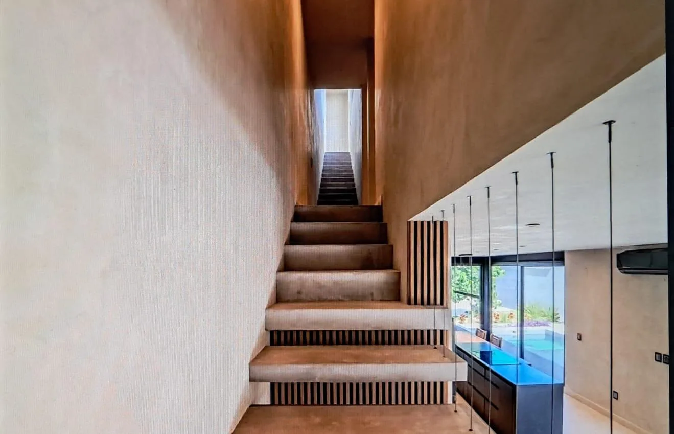 Built on a 356 square meter lot with 257 square meters of construction, the home offers a private garden. It is delivered semi-furnished and outfitted with high-end accessories.