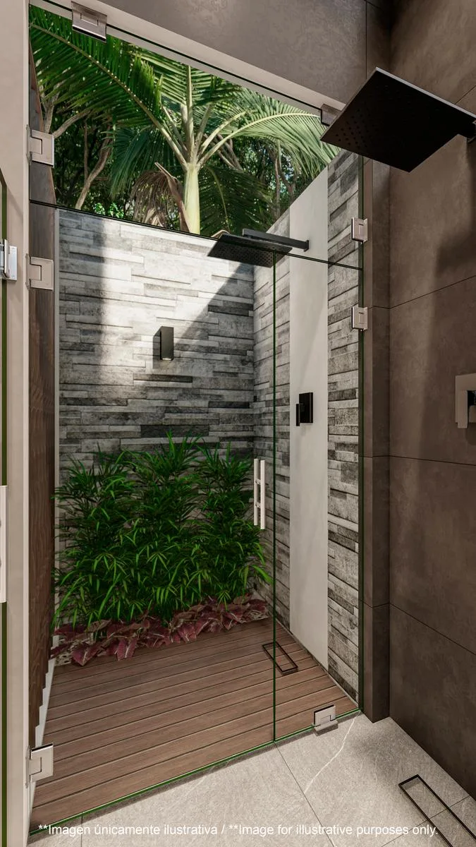 This single-story contemporary house is located within the Tulum Country Club, a secure and comprehensive community on the Riviera Maya. The property offers three bedrooms and three and a half bathrooms, featuring a private pool and a jacuzzi with ample indoor and outdoor living spaces.