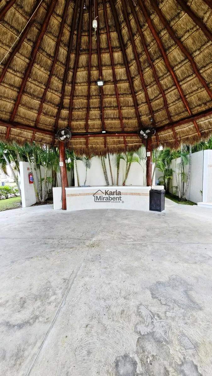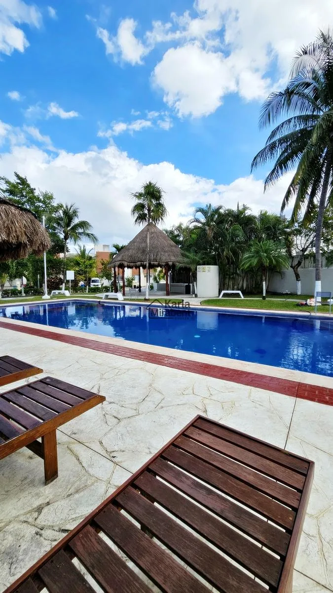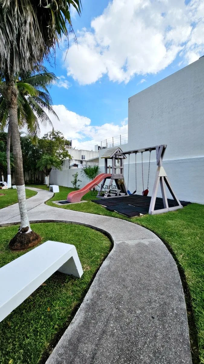 The Jardines del Sur 1 community offers a range of amenities. These include a double security gatehouse with cameras and controlled access, a large communal swimming pool with a wading area, a children's playground, a palapa by the pool with restrooms, sunbathing areas, and a car-free park.
