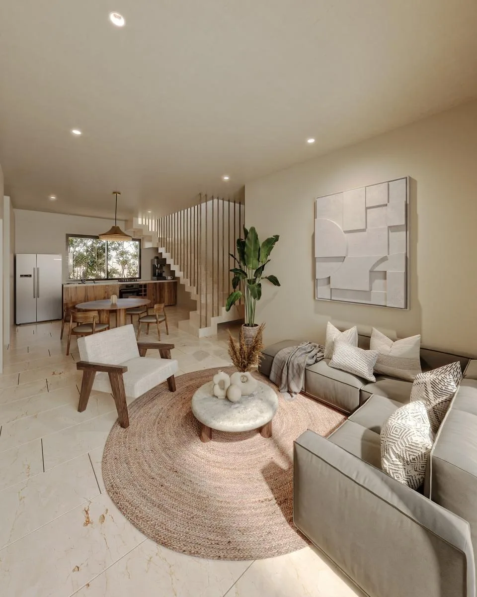 This house for sale in Tulum has a total size of 478. 8 square meters and features two bedrooms.
