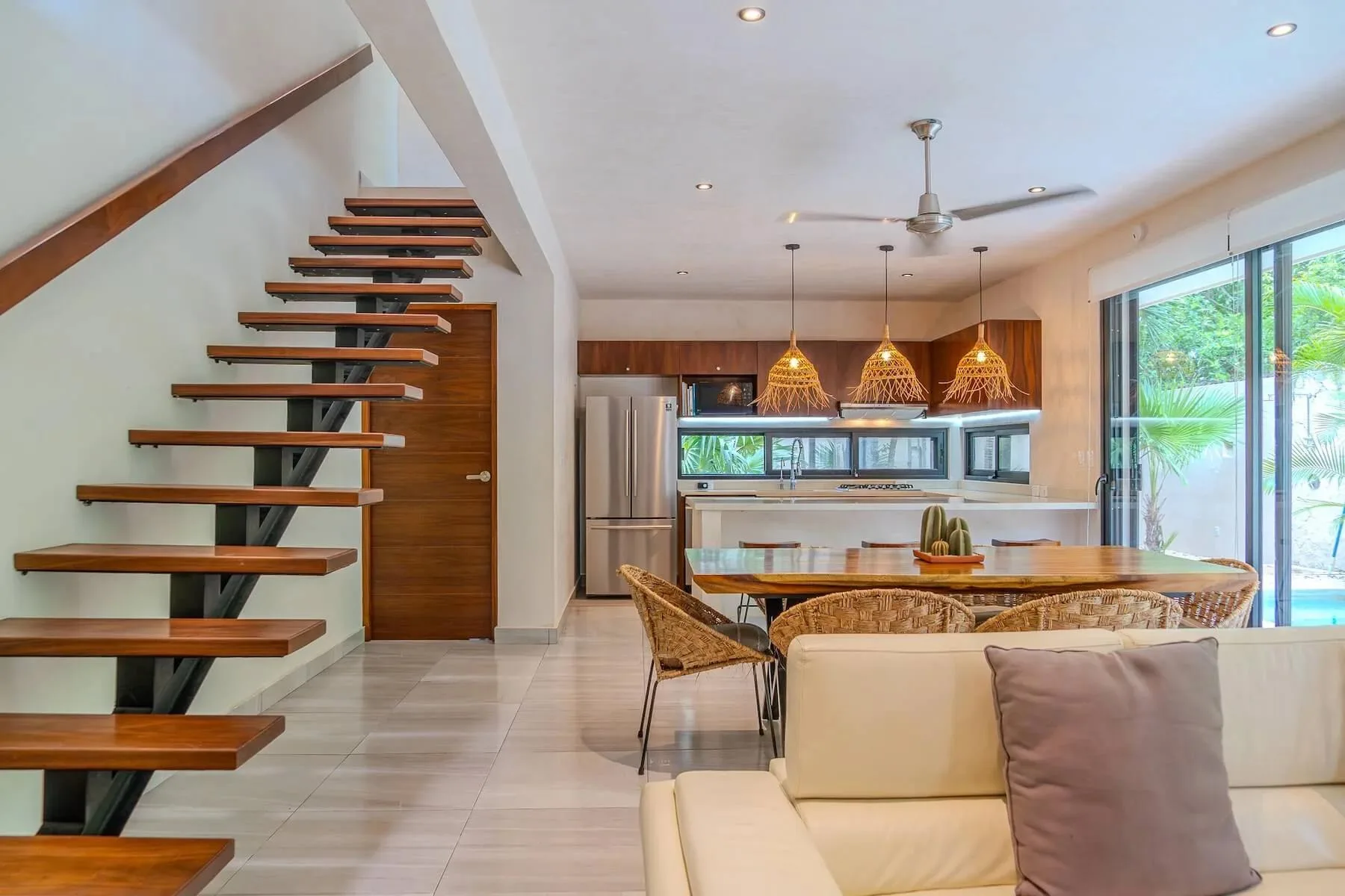 Situated in one of Tulum's fastest-growing areas, the home is in a quiet, high-appreciation zone. It is conveniently close to restaurants and shops, and only minutes from the beach.