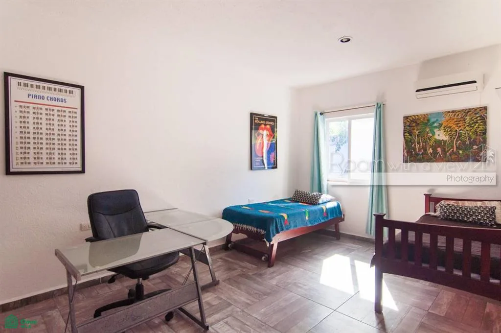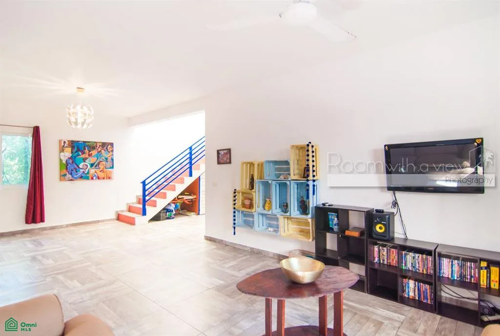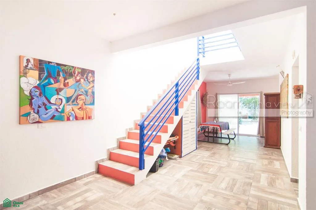 This spacious two-story family home is located in the quiet jungle community of Rancho San Martin in the Riviera Maya. The property is situated approximately one kilometer from a world-famous beach known for snorkeling with sea turtles. The location is between Playa del Carmen and Tulum.