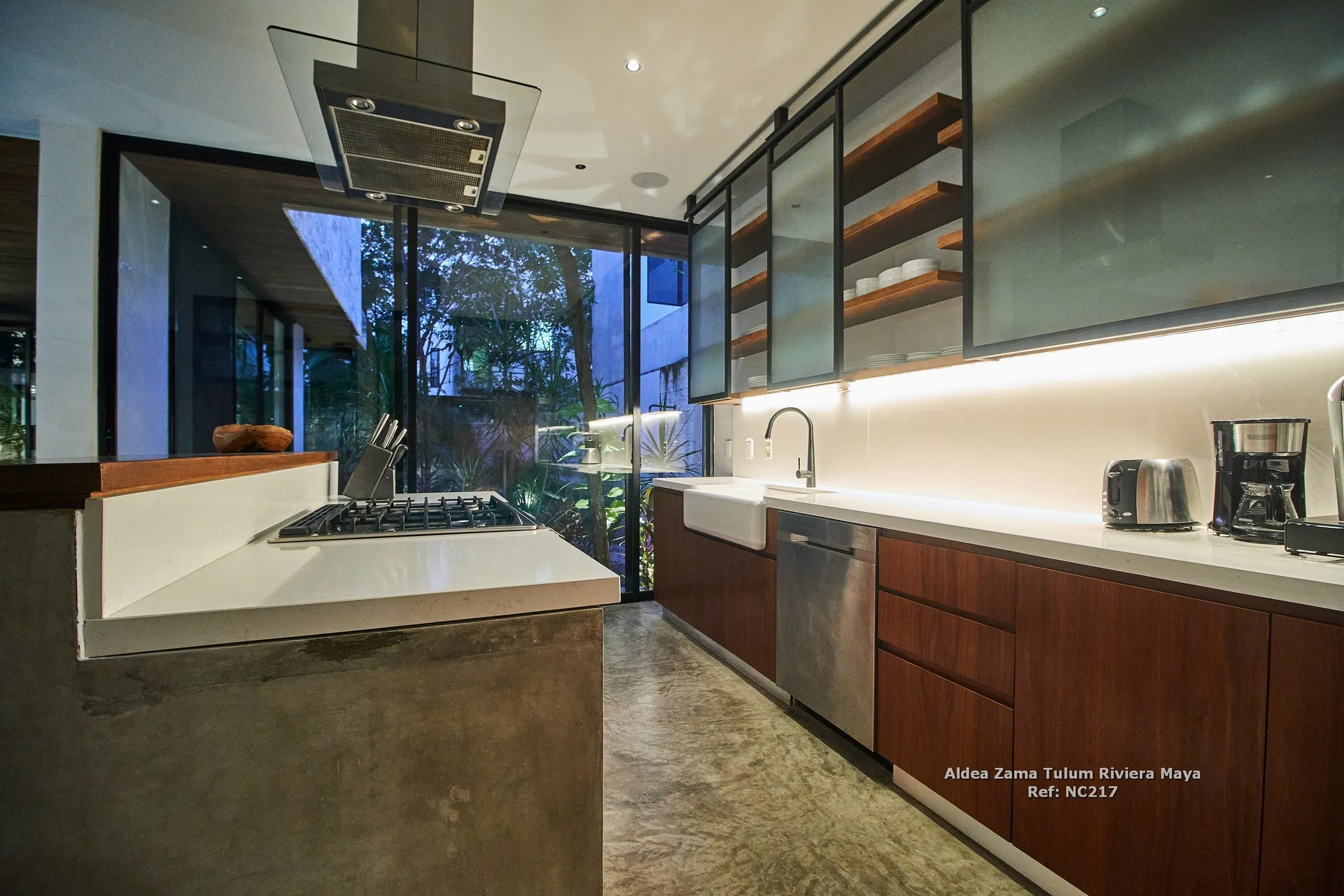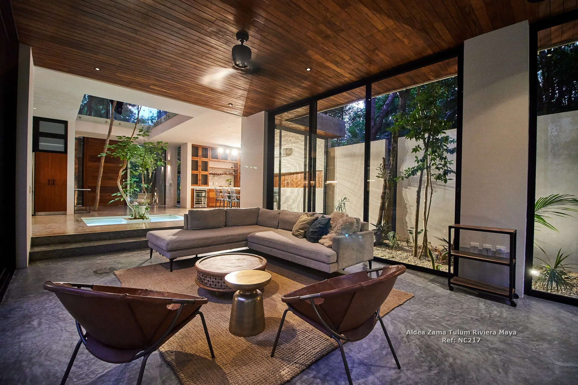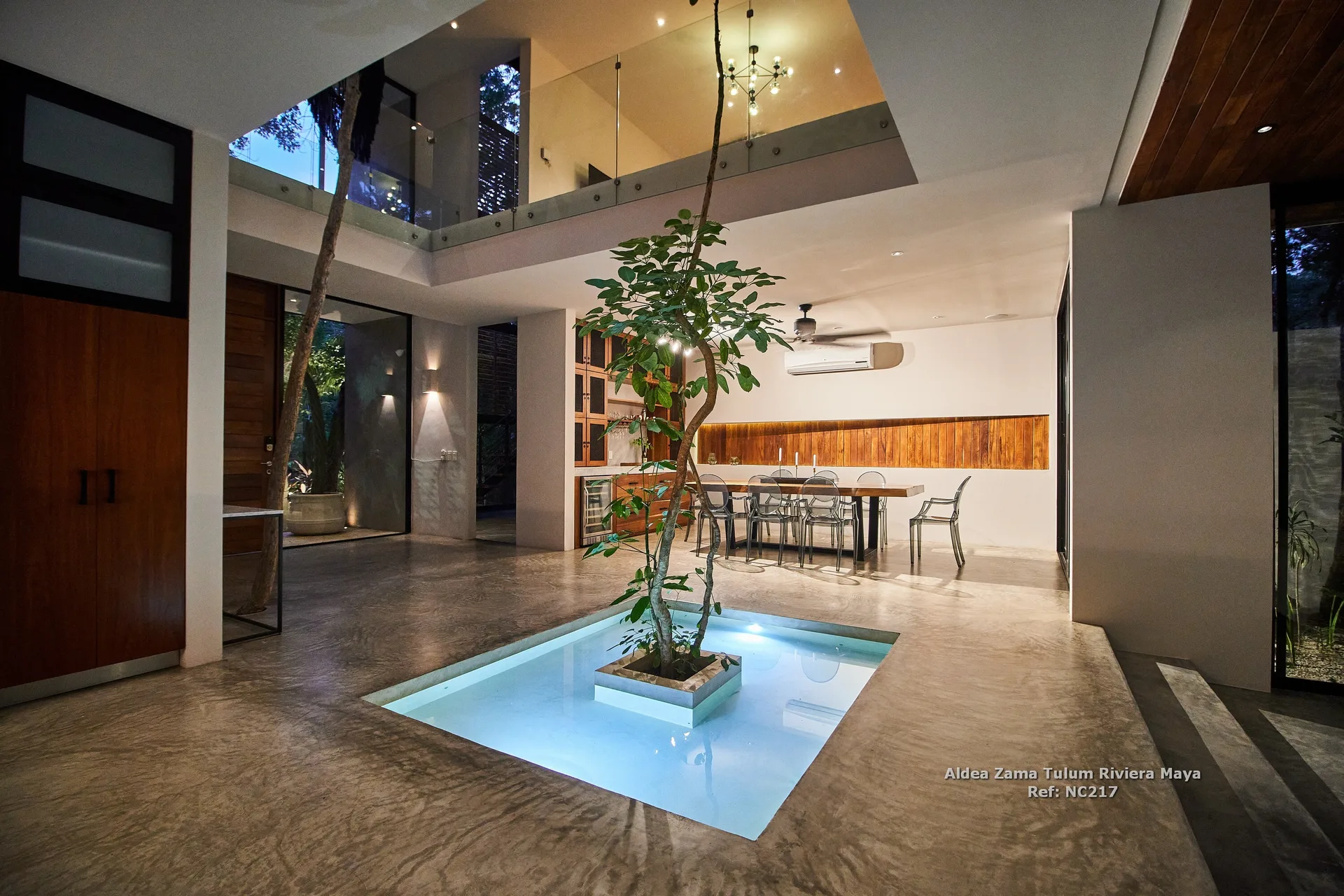 This property is located in Aldea Zama, Tulum. It features 394 square meters of construction with 4 bedrooms and 4. 5 bathrooms. The layout includes a fully equipped kitchen and social areas designed for comfort.