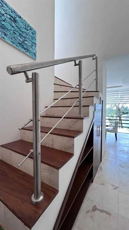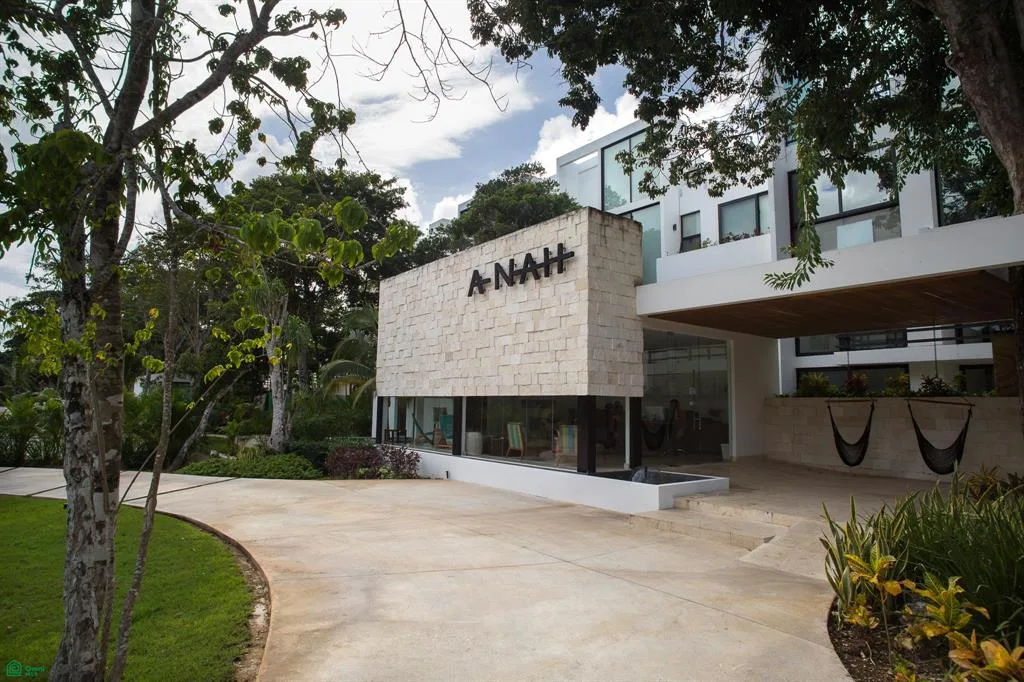 The penthouse is located within the Tulum Country Club & Golf hotel and residential complex. The development features white facades combined with natural elements, integrating the architecture with the surrounding environment.