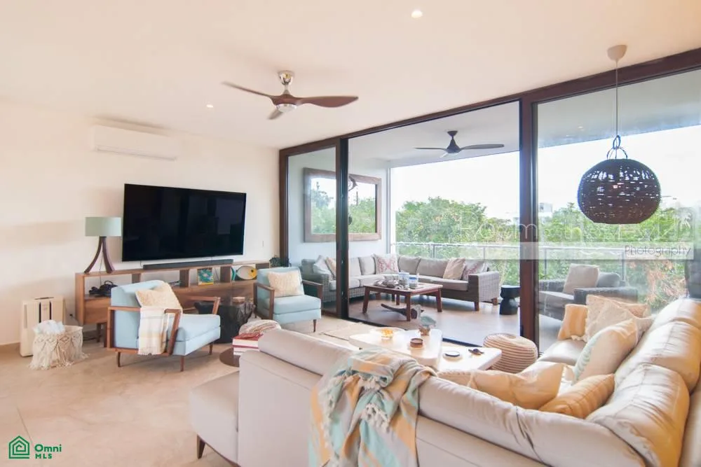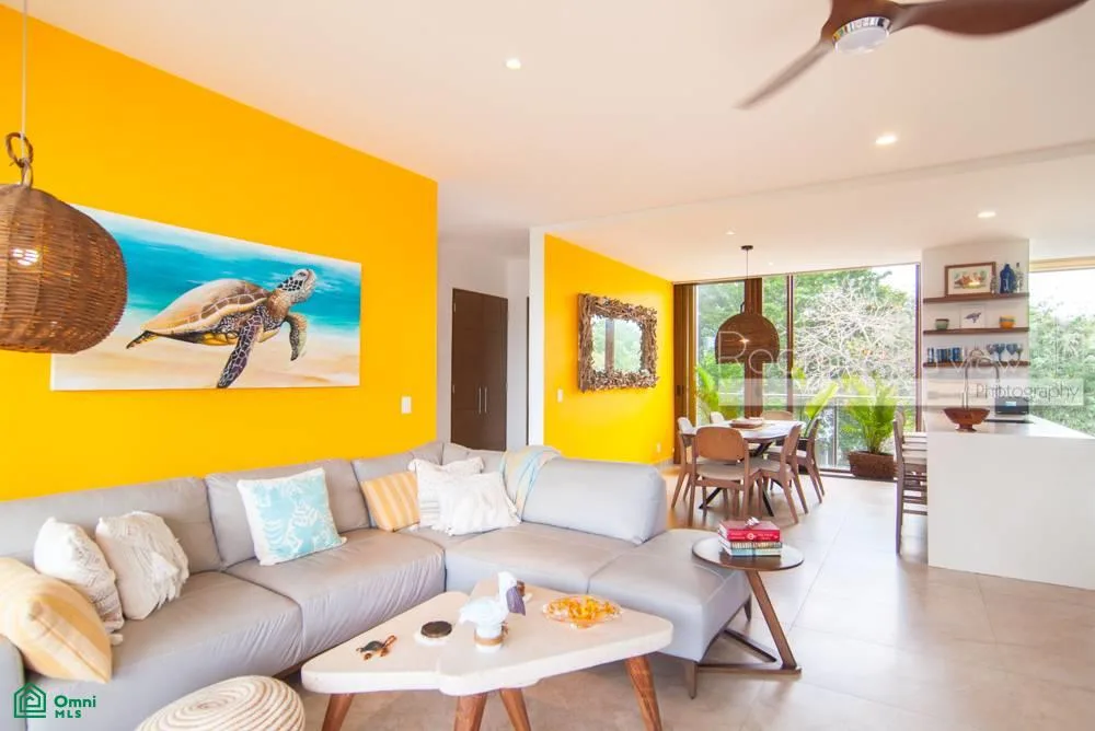 This beautifully updated penthouse condo is located within TAO Residential in Akumal. The residence is situated inside the 717-acre Tulum Country Club resort community, offering a tranquil setting surrounded by lush tropical jungle and a world-class golf course, just minutes from the Caribbean coast.