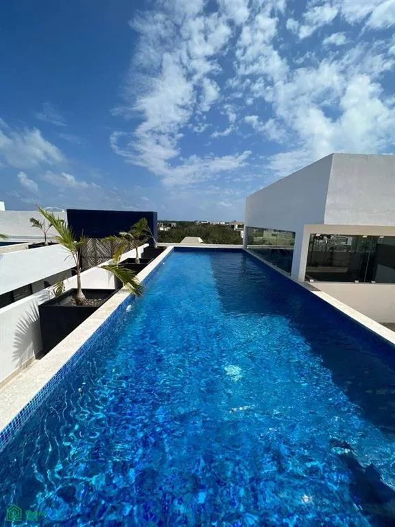 This is a two-story penthouse located in Tower 1 of the Parques Zama community within Aldea Zama, Tulum.