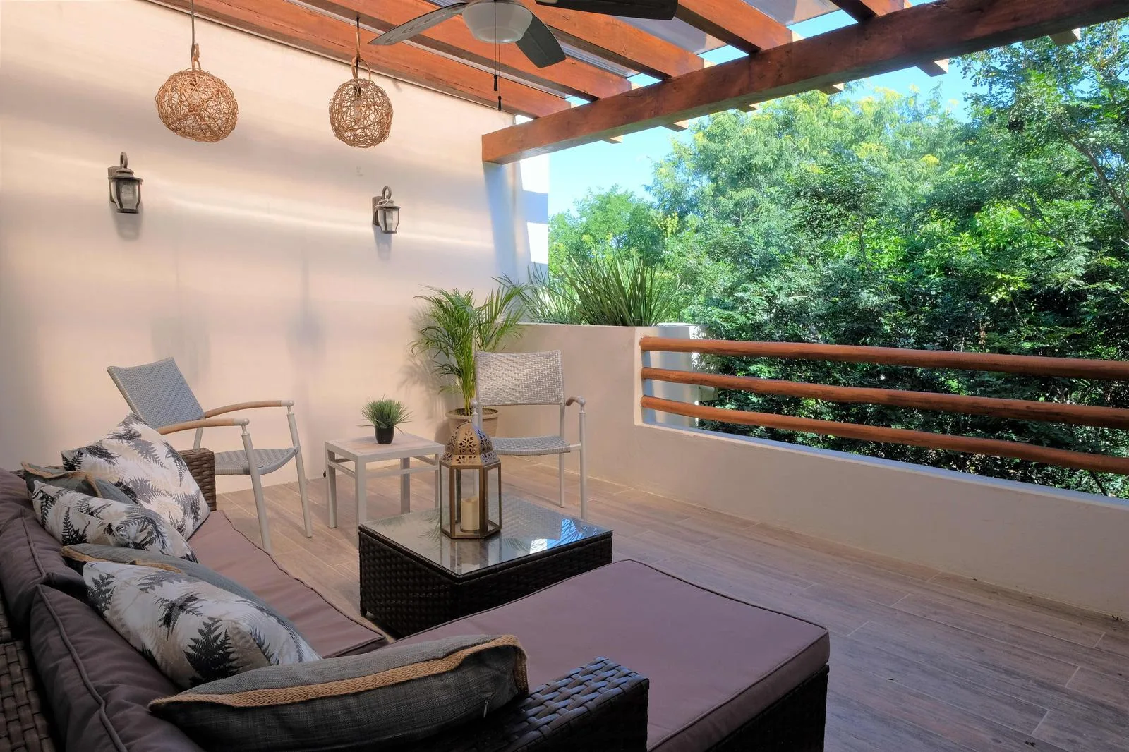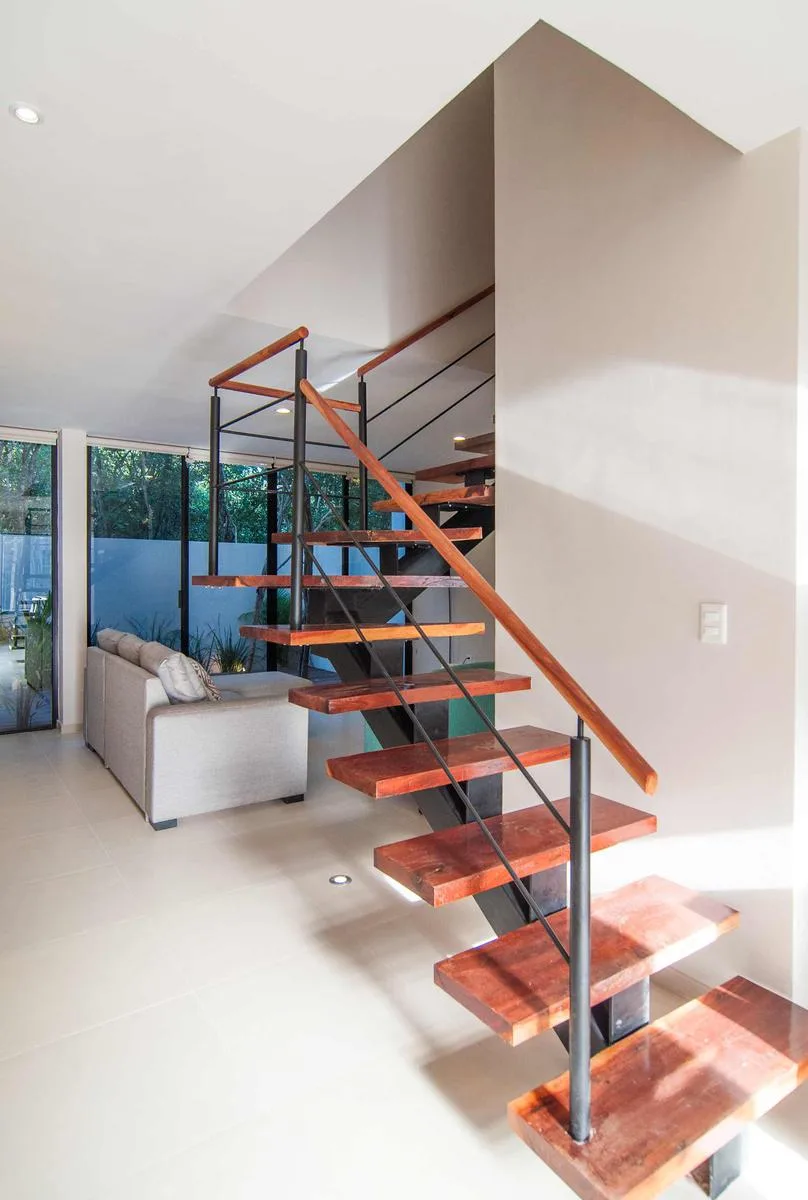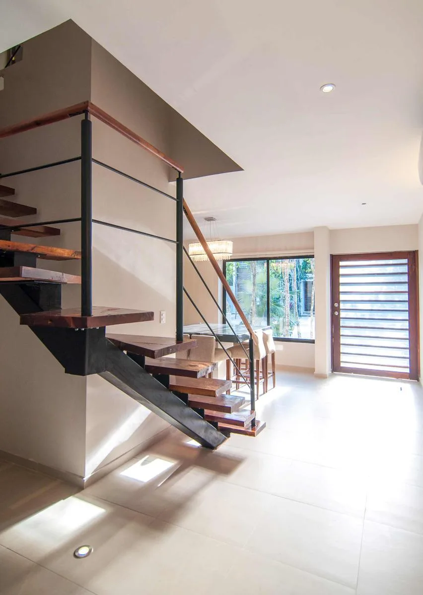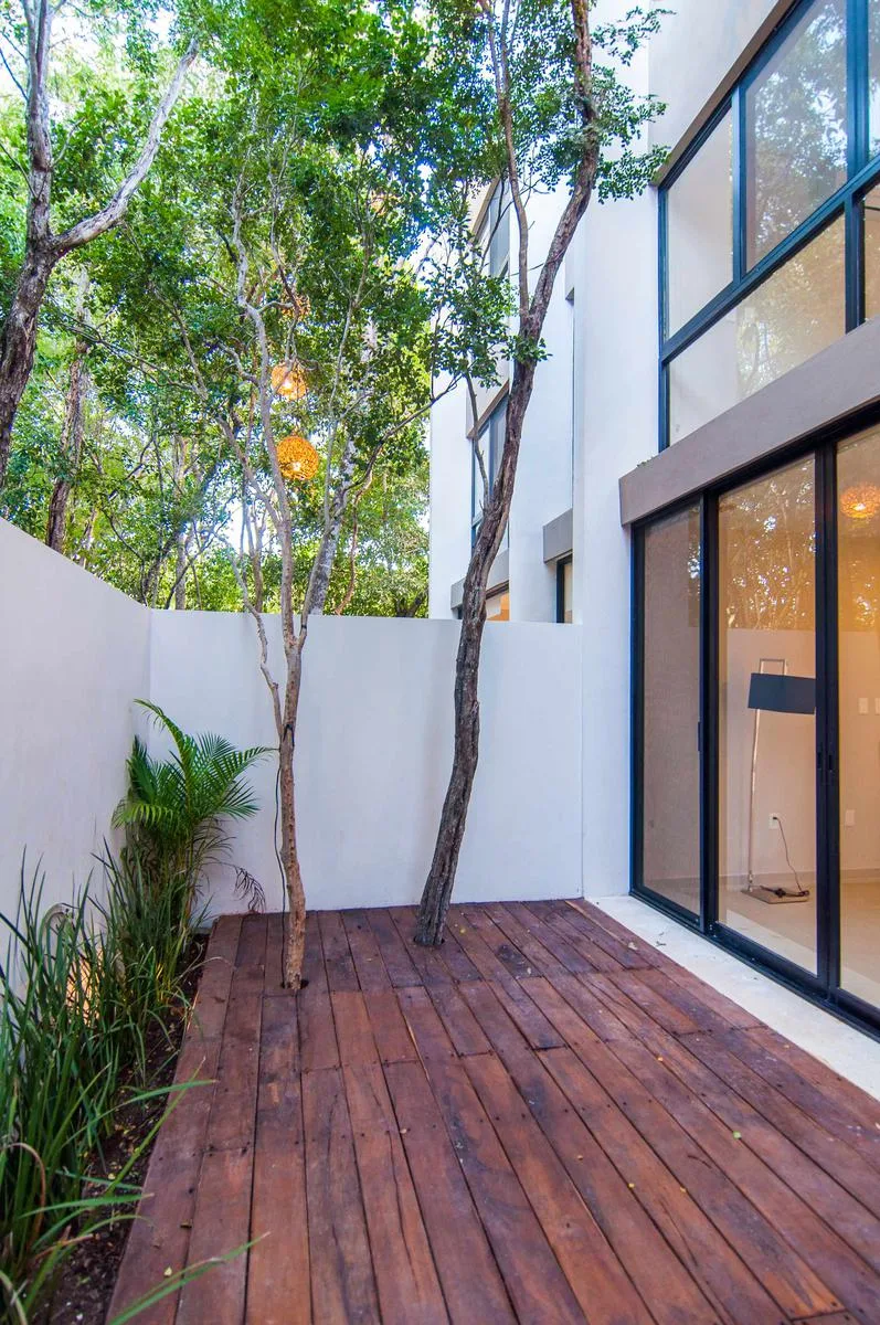 This fully furnished 2-bedroom townhouse is located in Aldea Zama, Tulum, and offers jungle views. Its position is central and proximate to the main entrance of Aldea Zama. The property features a unique layout spanning three floors with a private backyard and a rooftop terrace.
