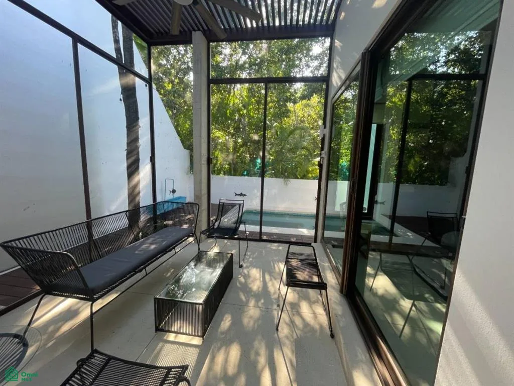 This modern two-bedroom, two-bathroom townhouse is located within the secure, gated Tao Community at Tulum Country Club. The residence is beautifully designed for tropical living.