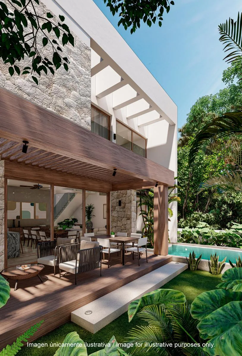 This luxury residence is located within one of the most exclusive communities in the Riviera Maya. The property features a contemporary style and is set within a natural environment. It offers 3 bedrooms and 2. 5 bathrooms across a total constructed area of 244. 06 square meters (2, 627. 03 square feet). The design emphasizes spacious interiors, open social areas, and integration with lush vegetation.