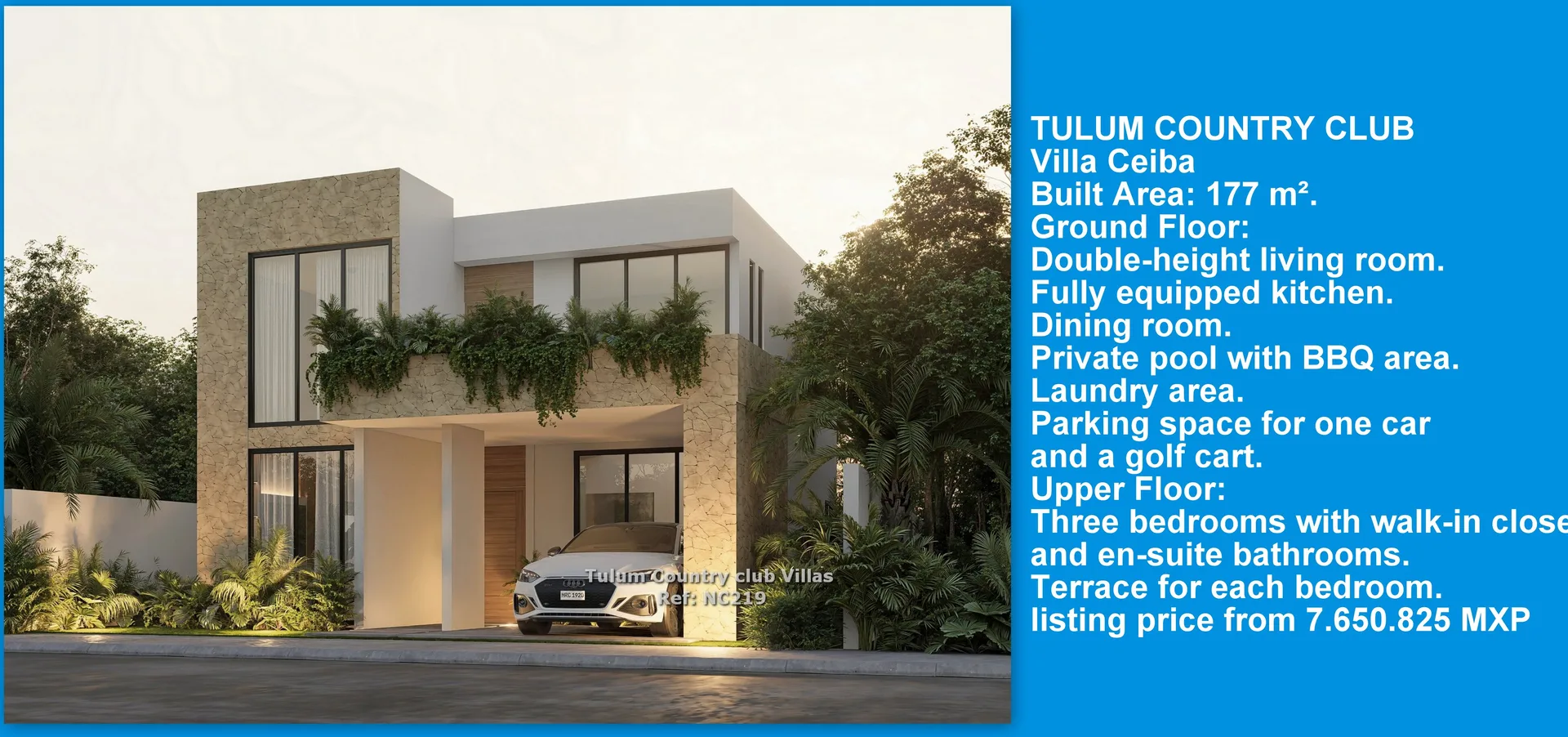 Discover a home where luxury and nature blend perfectly. Located within the prestigious Tulum Country Club, this villa offers a unique living experience, surrounded by lush vegetation and with access to the first PGA golf course in Latin America.