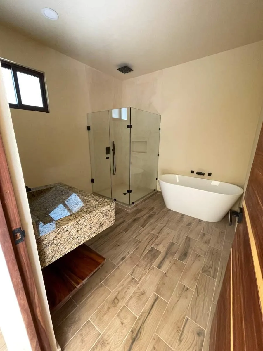 This villa is part of a small community of four homes located within the gated community of Rancho Santa Teresita. The residence offers 175 square meters of living space, with an additional 125-square-meter rooftop terrace and private parking, bringing the total constructed area to 320 square meters. The property sits on 900 square meters of private land.