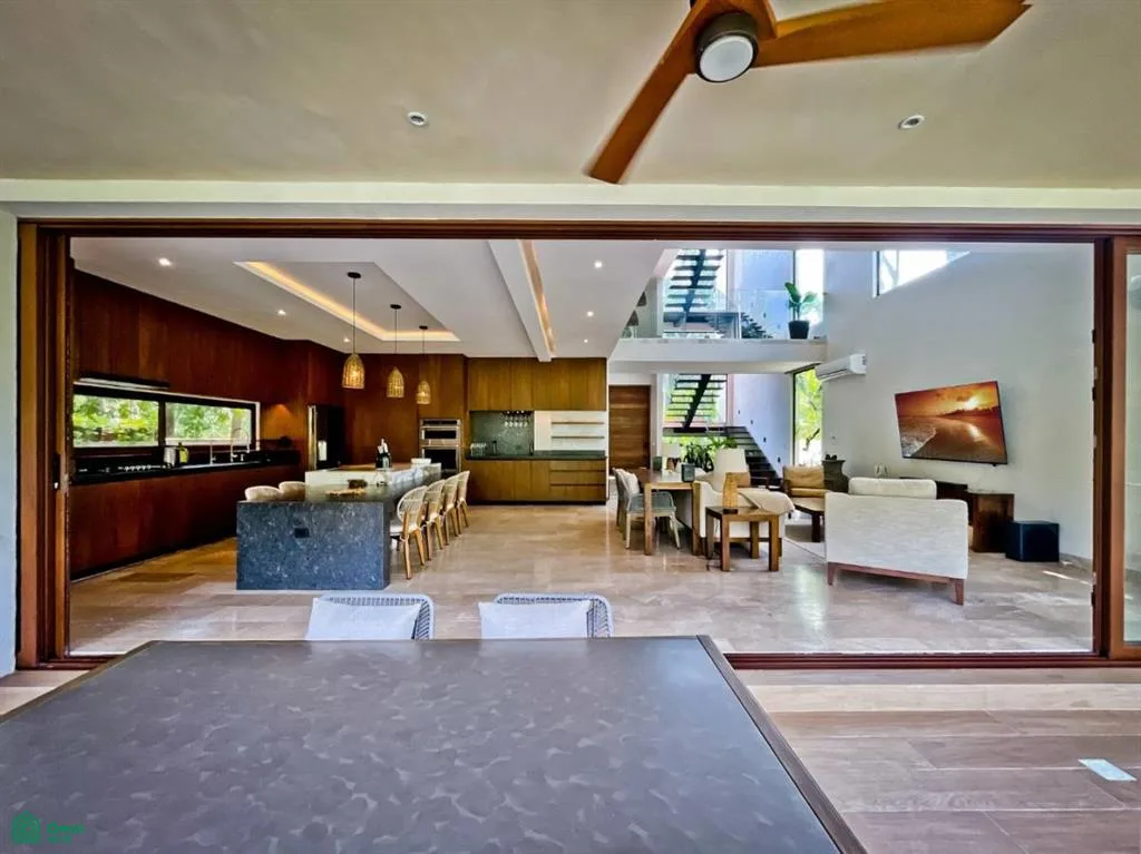 This two-story villa is situated within the secure gated community of Tulum Country Club in Akumal, surrounded by lush jungle and minutes from white sandy beaches. The community provides access to a 27-hole Robert Trent Jones II golf course, beach shuttle service, and preferred beach club entry.