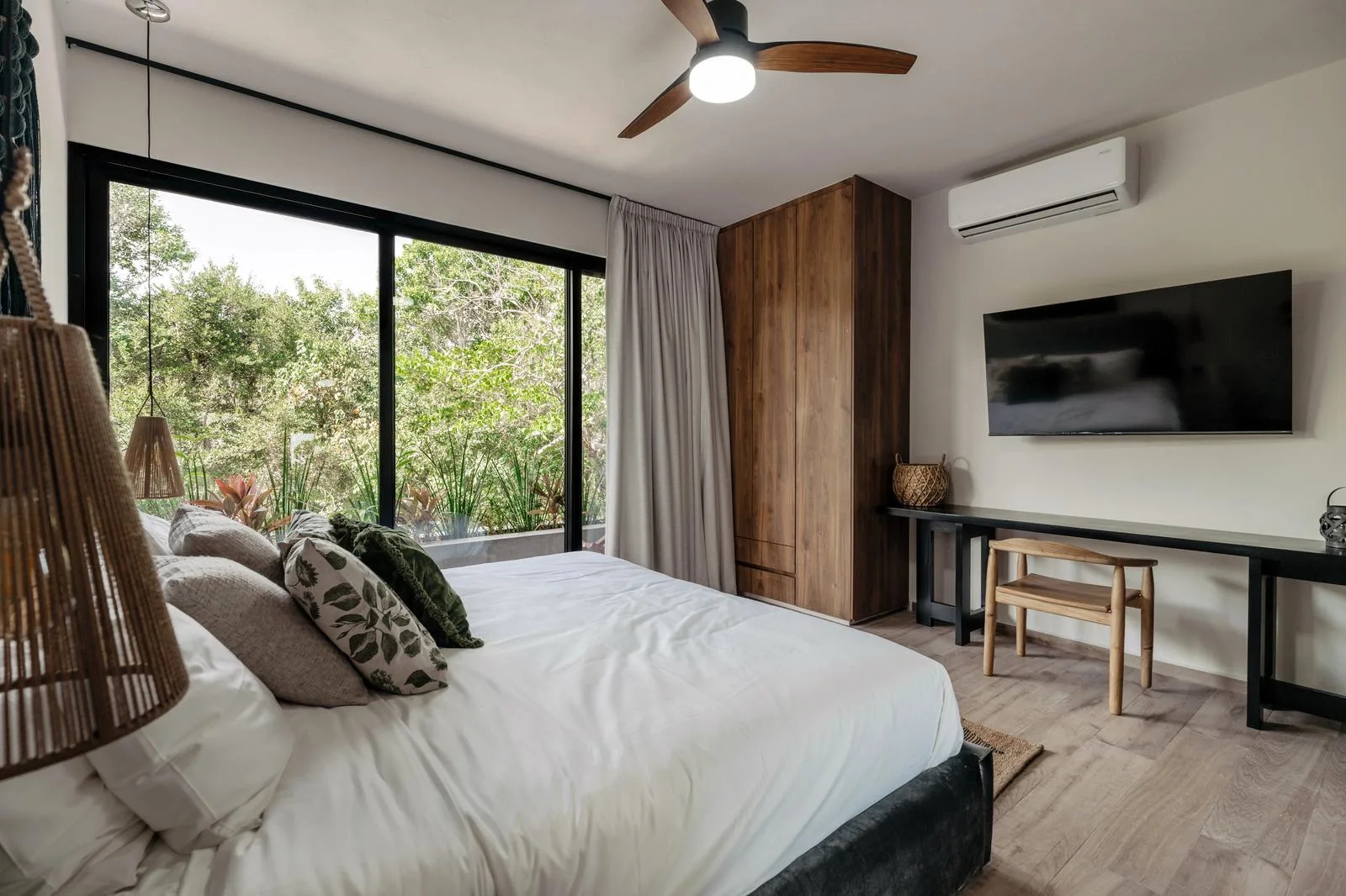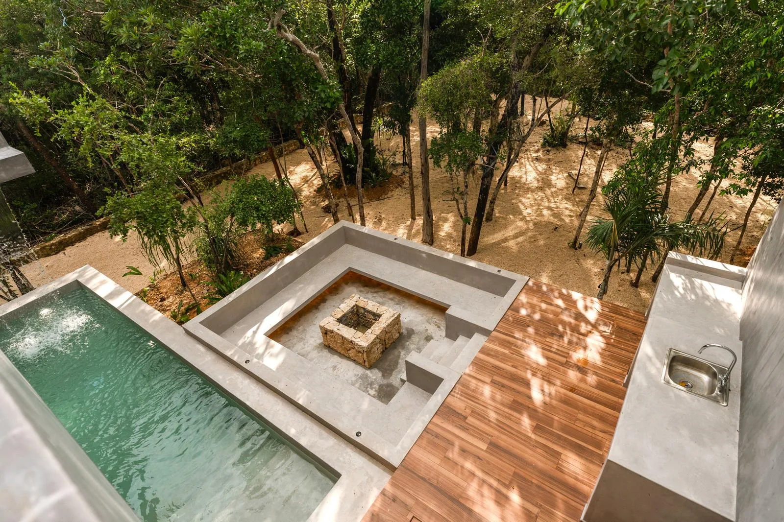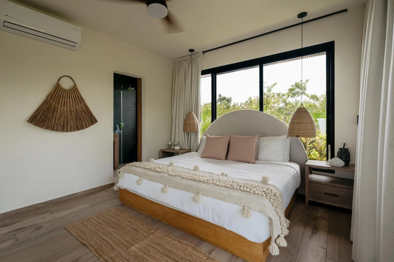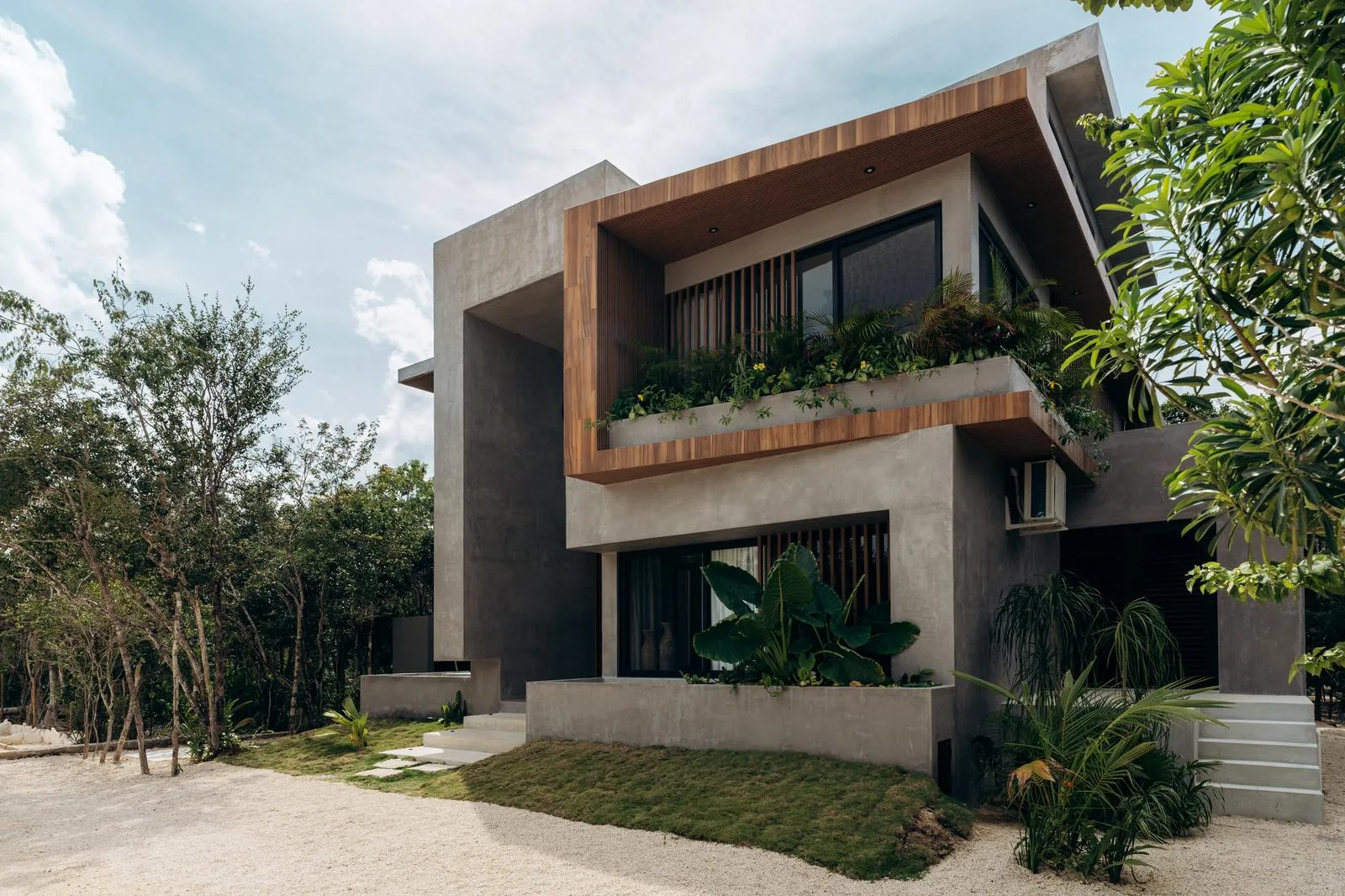 The residence is situated in a peaceful, ecologically conscious gated community near the beach in Tulum. The area is recognized for sustainable development and a harmonious connection with nature. The neighborhood combines modern amenities with environmentally friendly design, offering a tranquil environment surrounded by lush greenery. It is close to the vibrant culture, beaches, and attractions of Tulum.