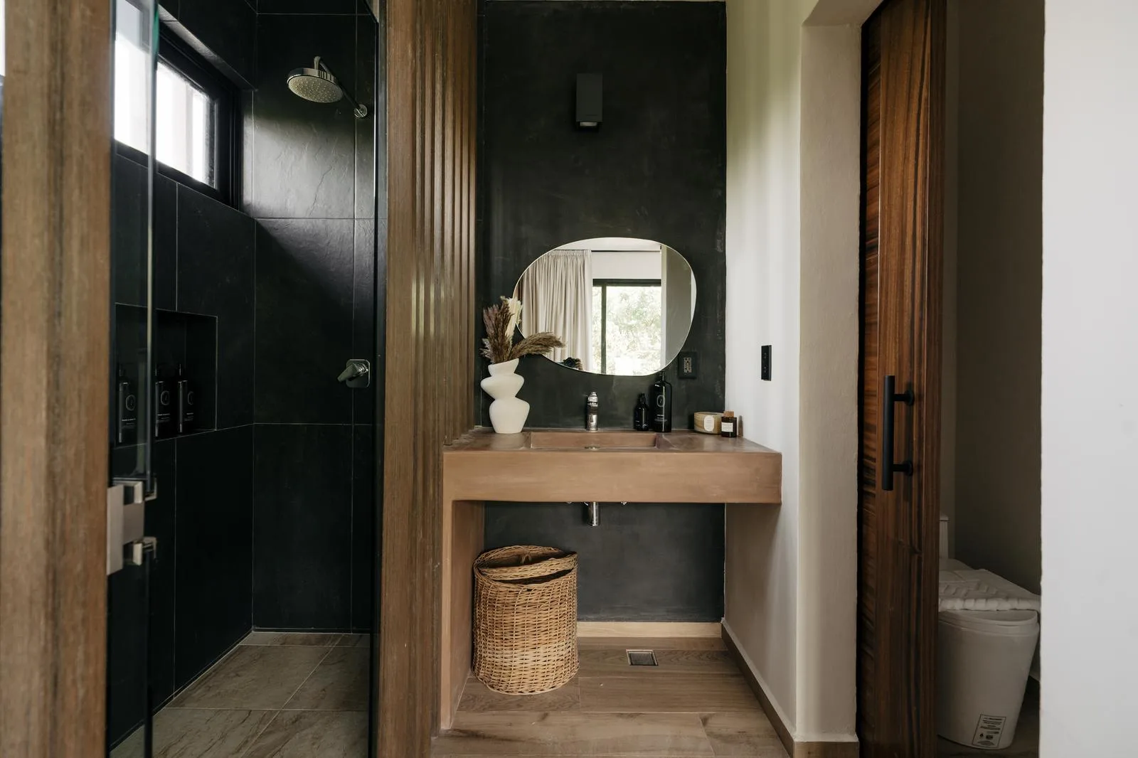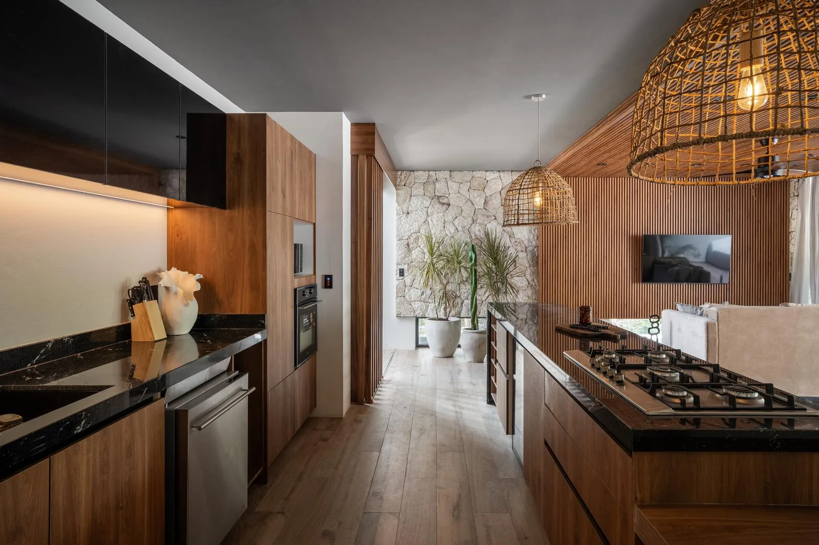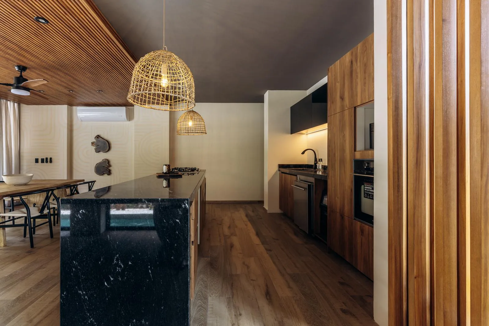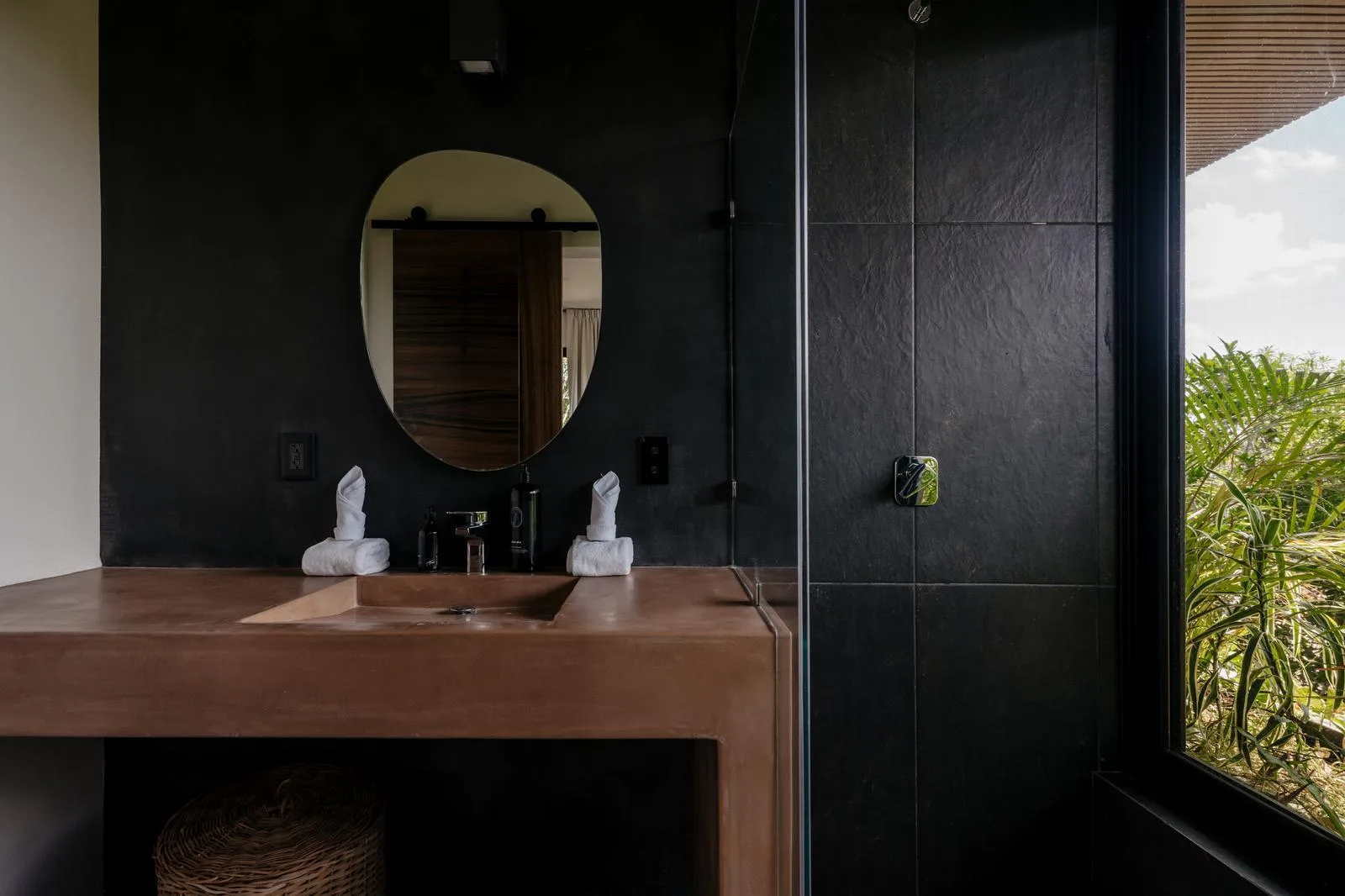 The residence is situated in a peaceful, ecologically conscious gated community near the beach in Tulum. The area is recognized for sustainable development and a harmonious connection with nature. The neighborhood combines modern amenities with environmentally friendly design, offering a tranquil environment surrounded by lush greenery. It is close to the vibrant culture, beaches, and attractions of Tulum.